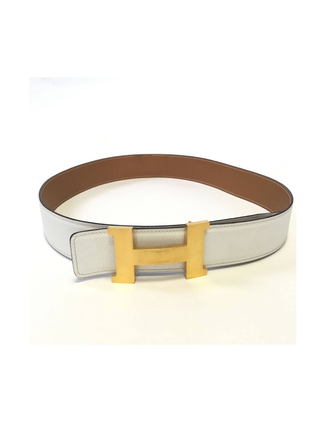 Belt HERMES reversible gold and white T90