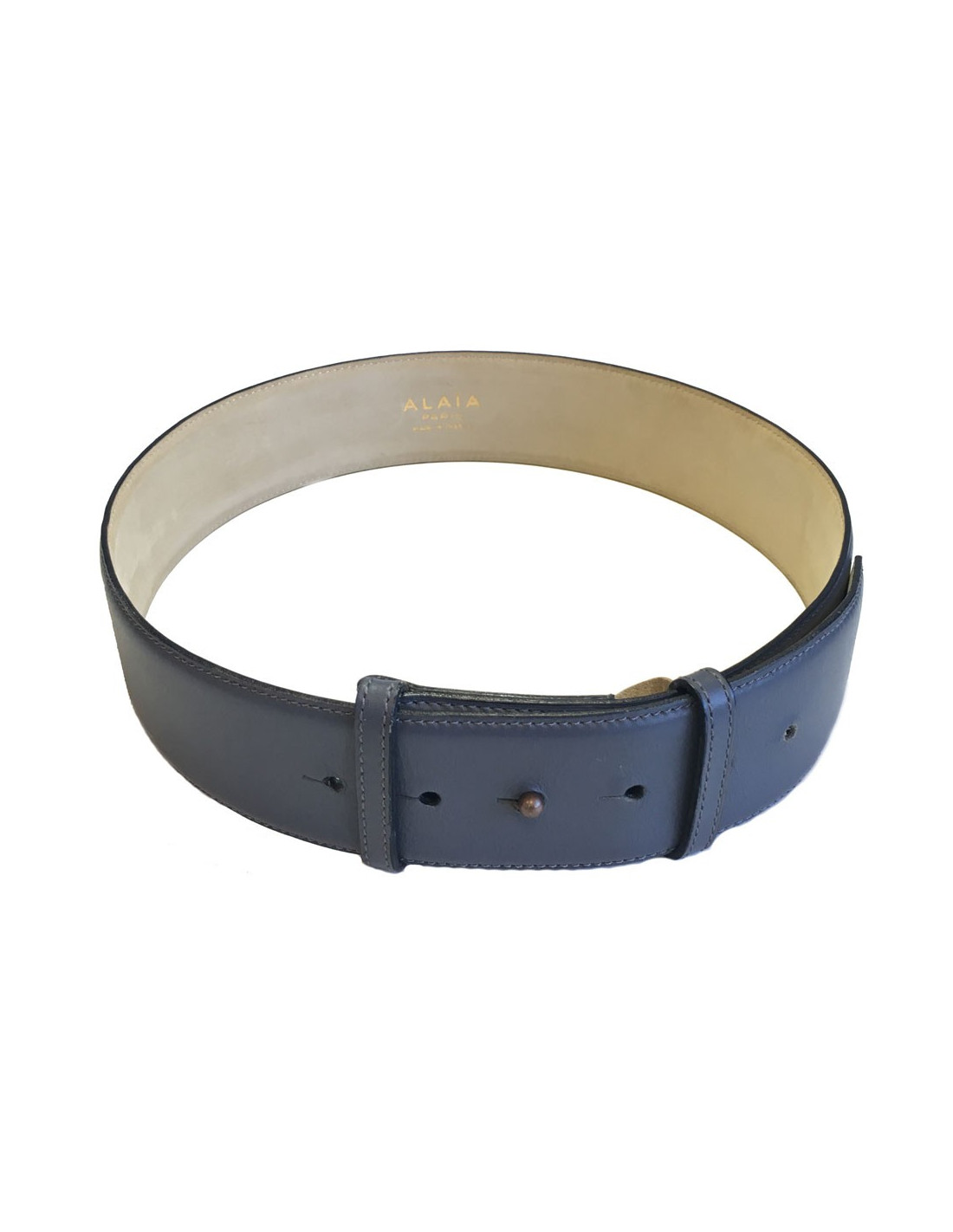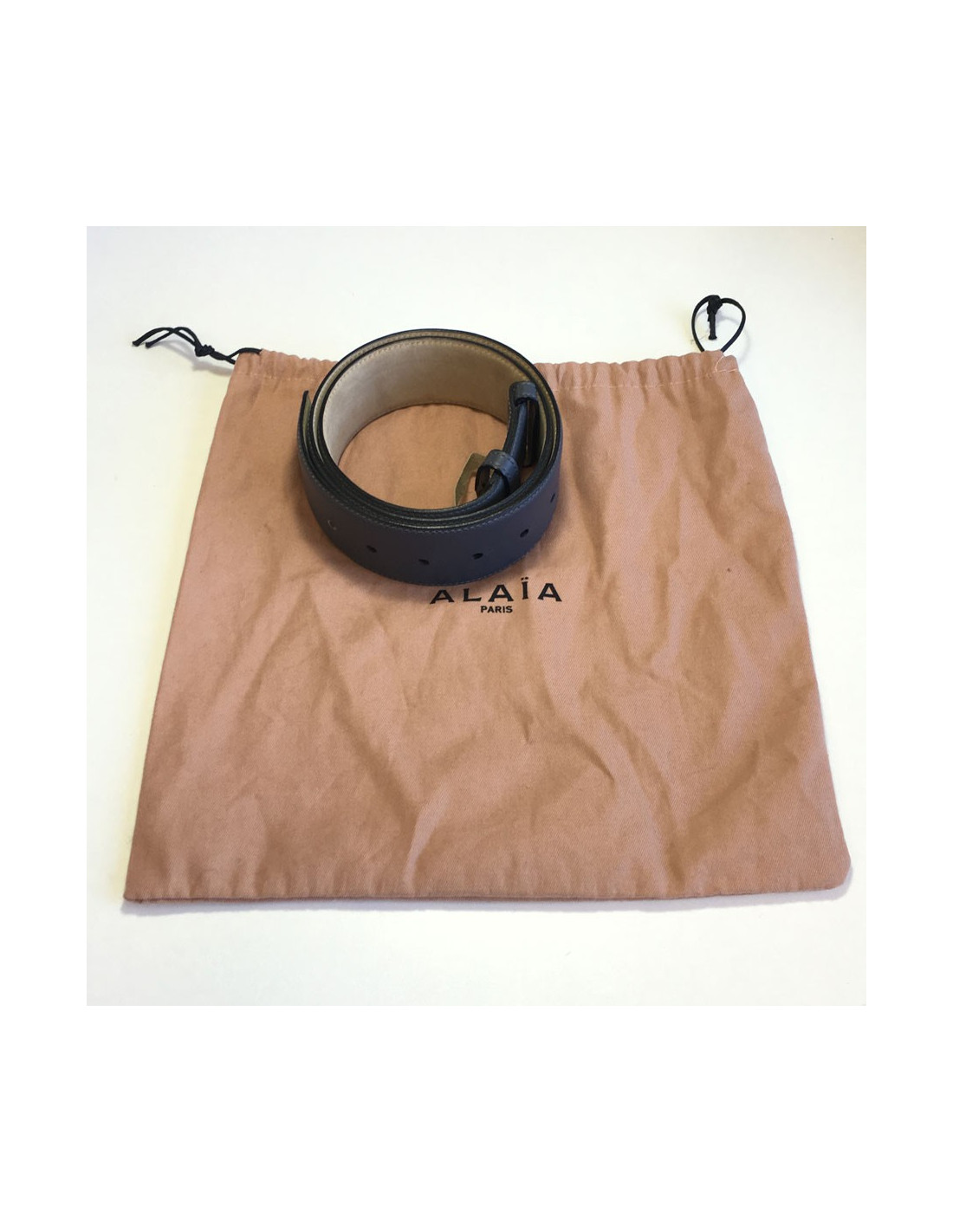 ALAÏA belt in dark gray leather, beige suede interior. Size 75FR. In very good condition. A tiny scratch on the gray leather (see photo).