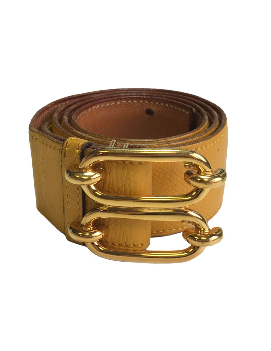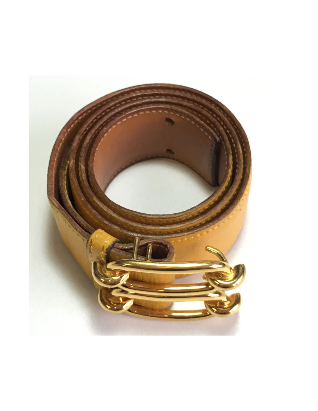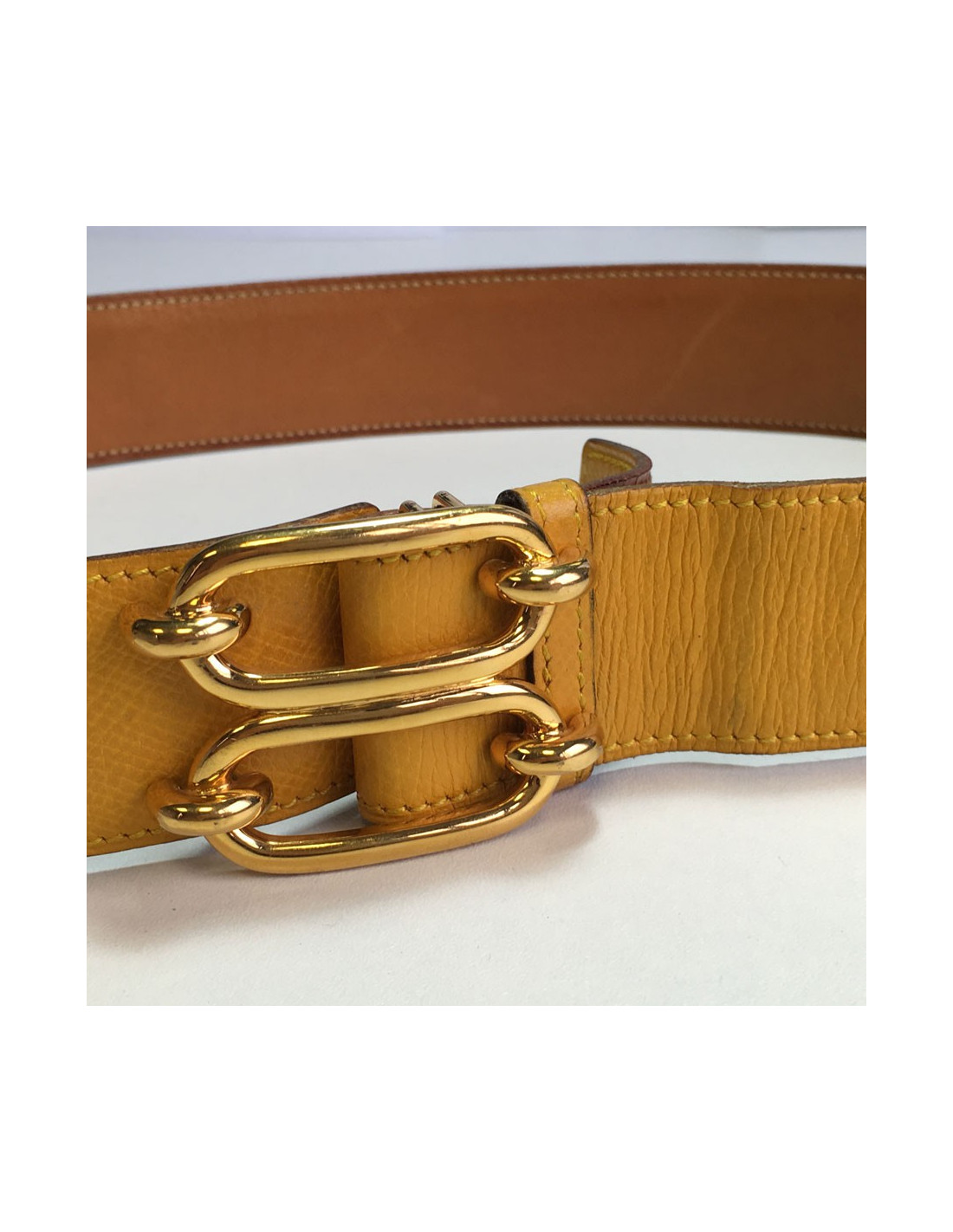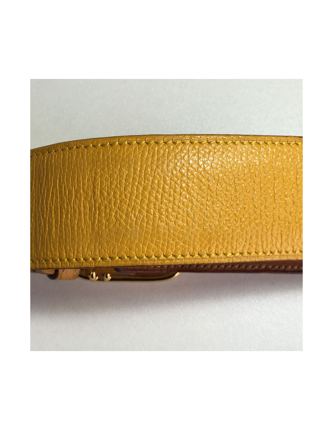 Belt Hermes vintage yellow courchevel leather and leather smooth gold (reversible), small folds of wear to the yellow side loop level if nothing else to report. Side gold, a slight mark on the middle. Immaculate Golden brass clasp.