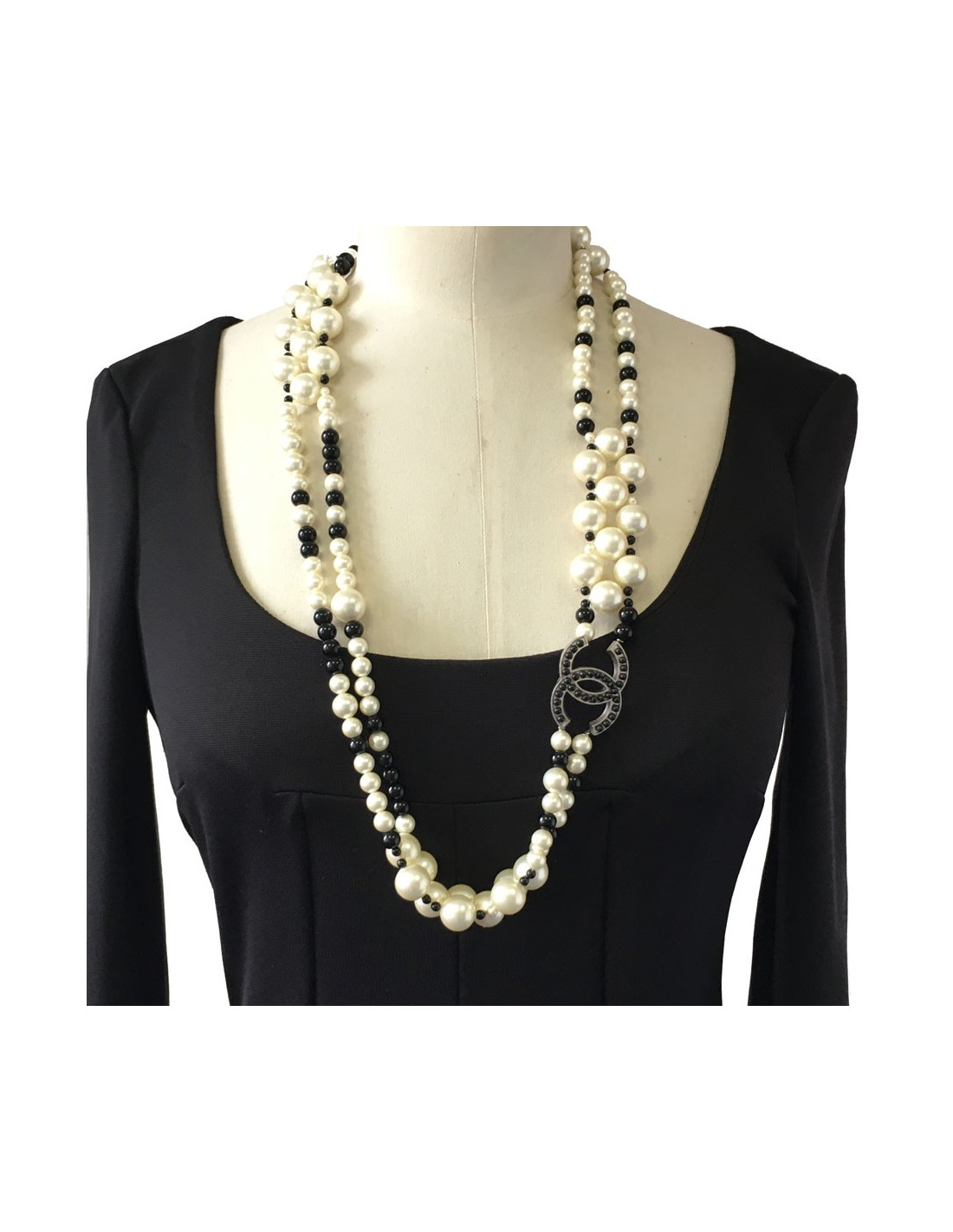 Ceinture-sautoir CHANEL en perles nacrées et noires vintage