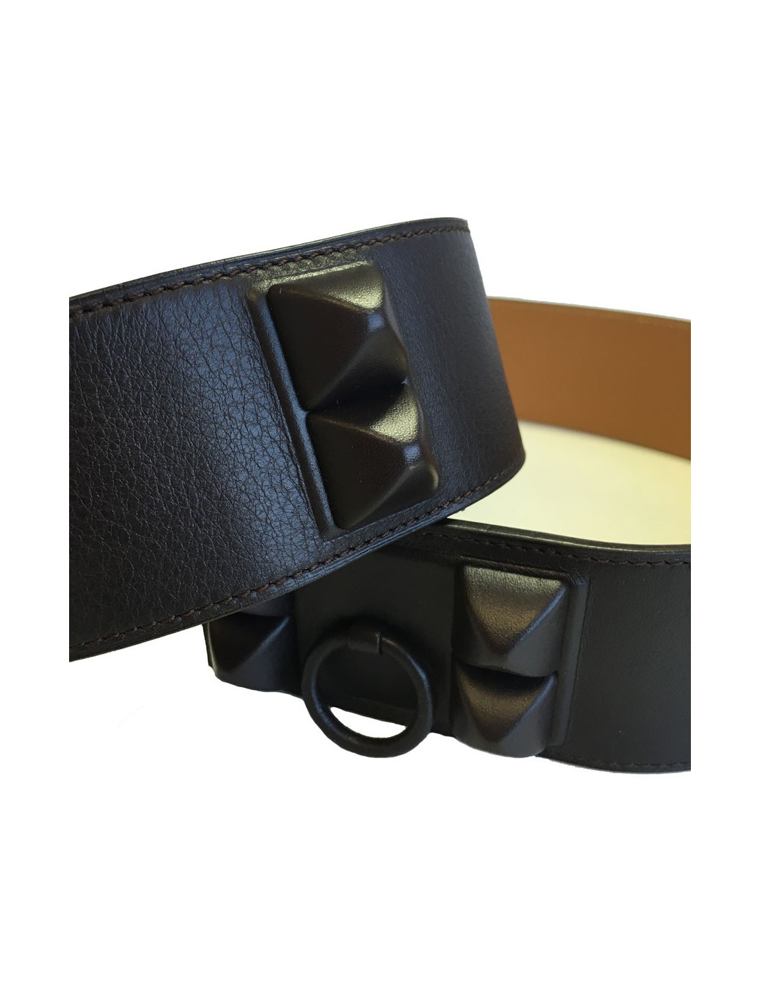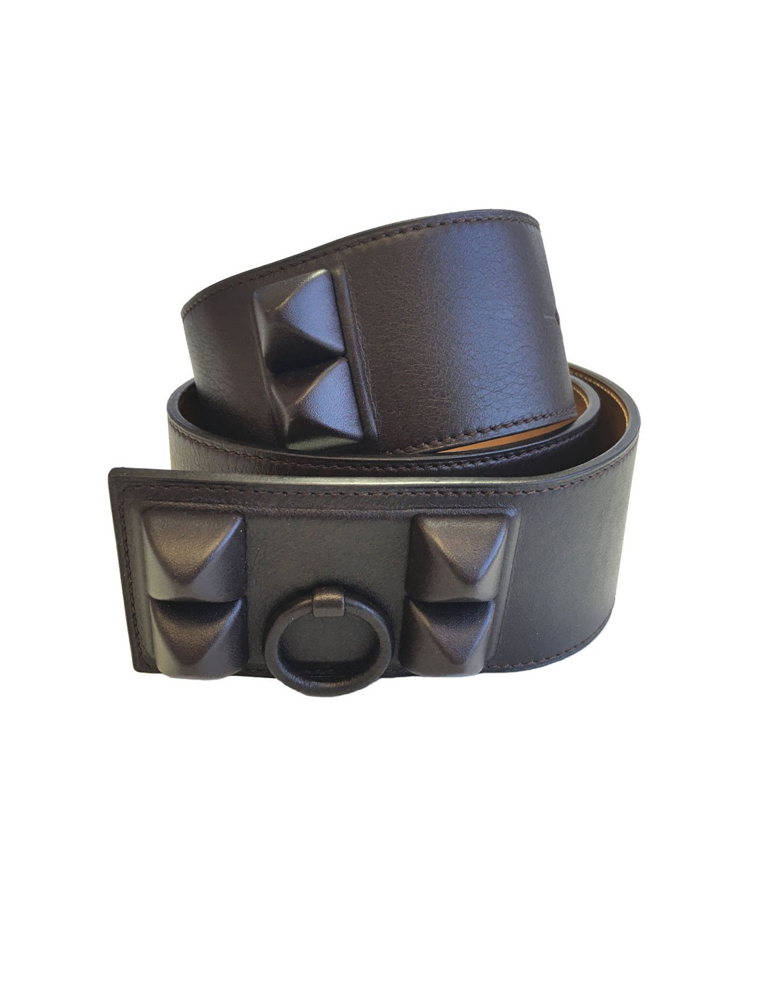 Ceinture Hermes Médor entiérement gainée de taurillon cacao