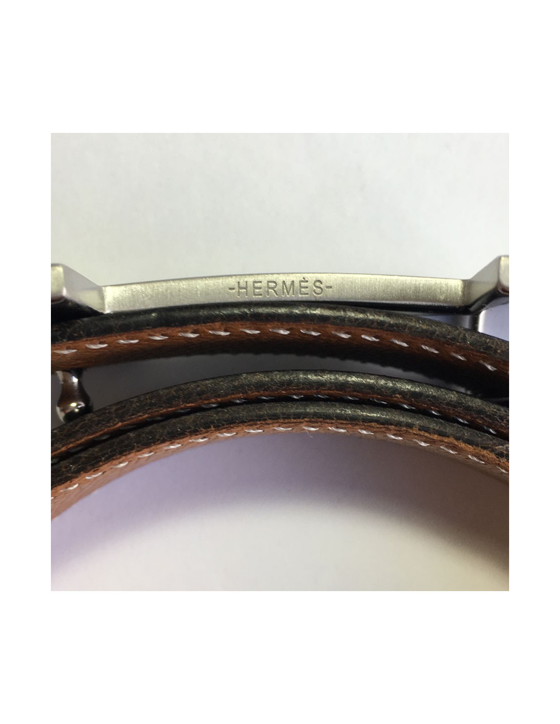 Ceinture HERMES T 75 réversible en cuir box noir et cuir grainé gold