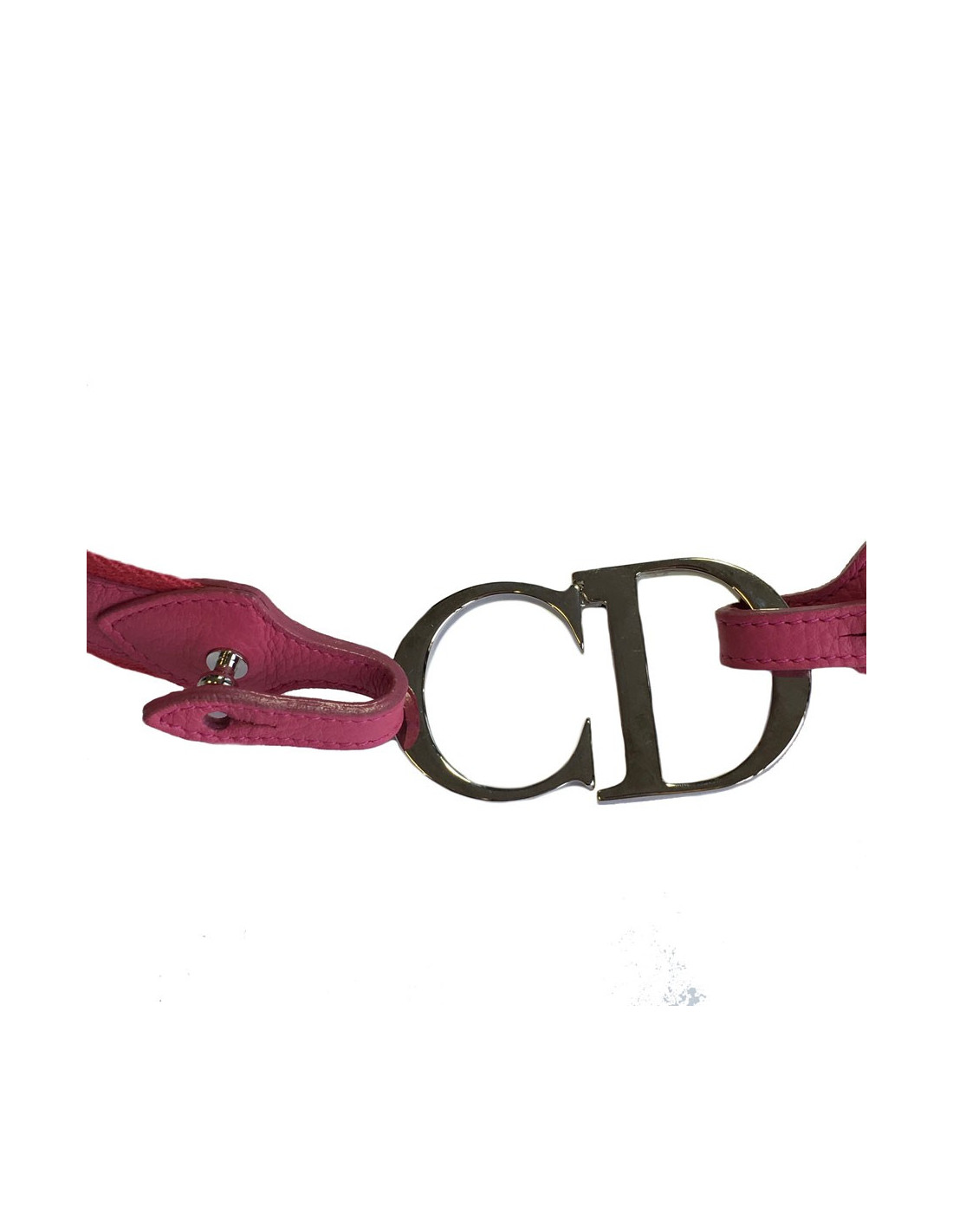 Ceinture CHRISTIAN DIOR en tissu rose. Boucle CD en métal argenté. En très bon état.