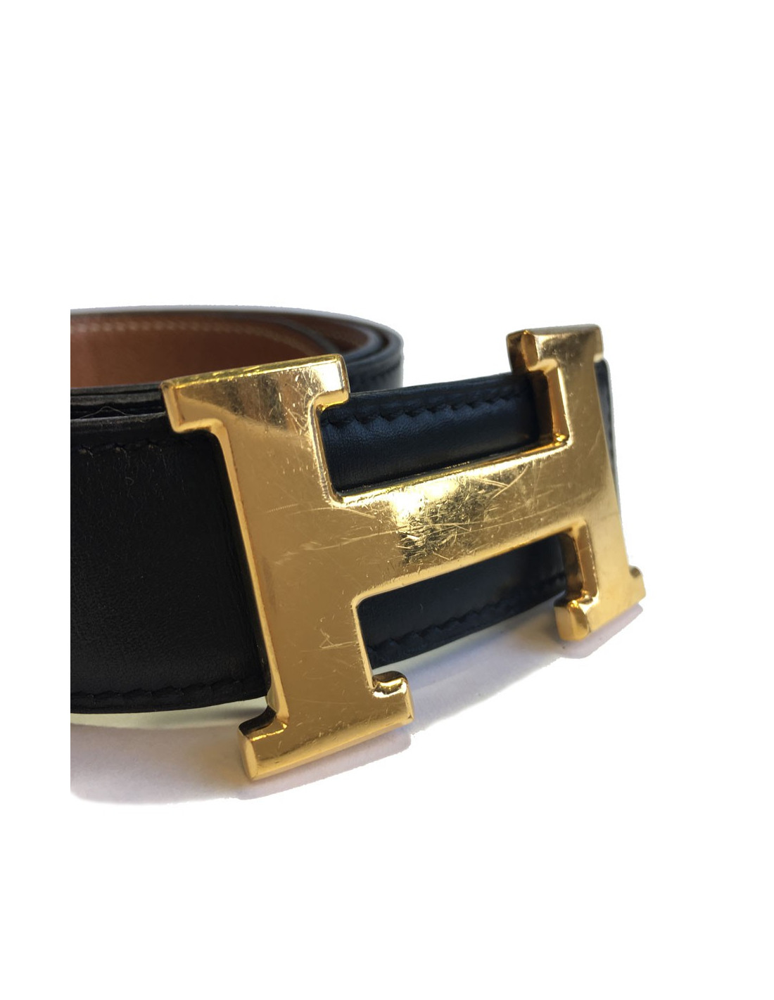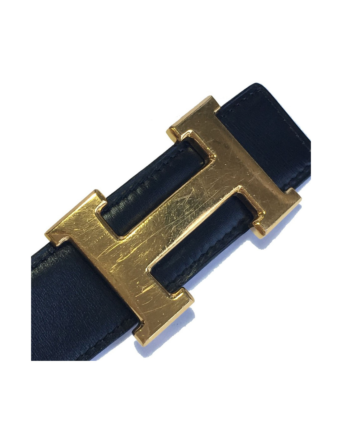 In good condition. Micro scratches on the clasp H. A fourth hole has been added on the leather (see photo).