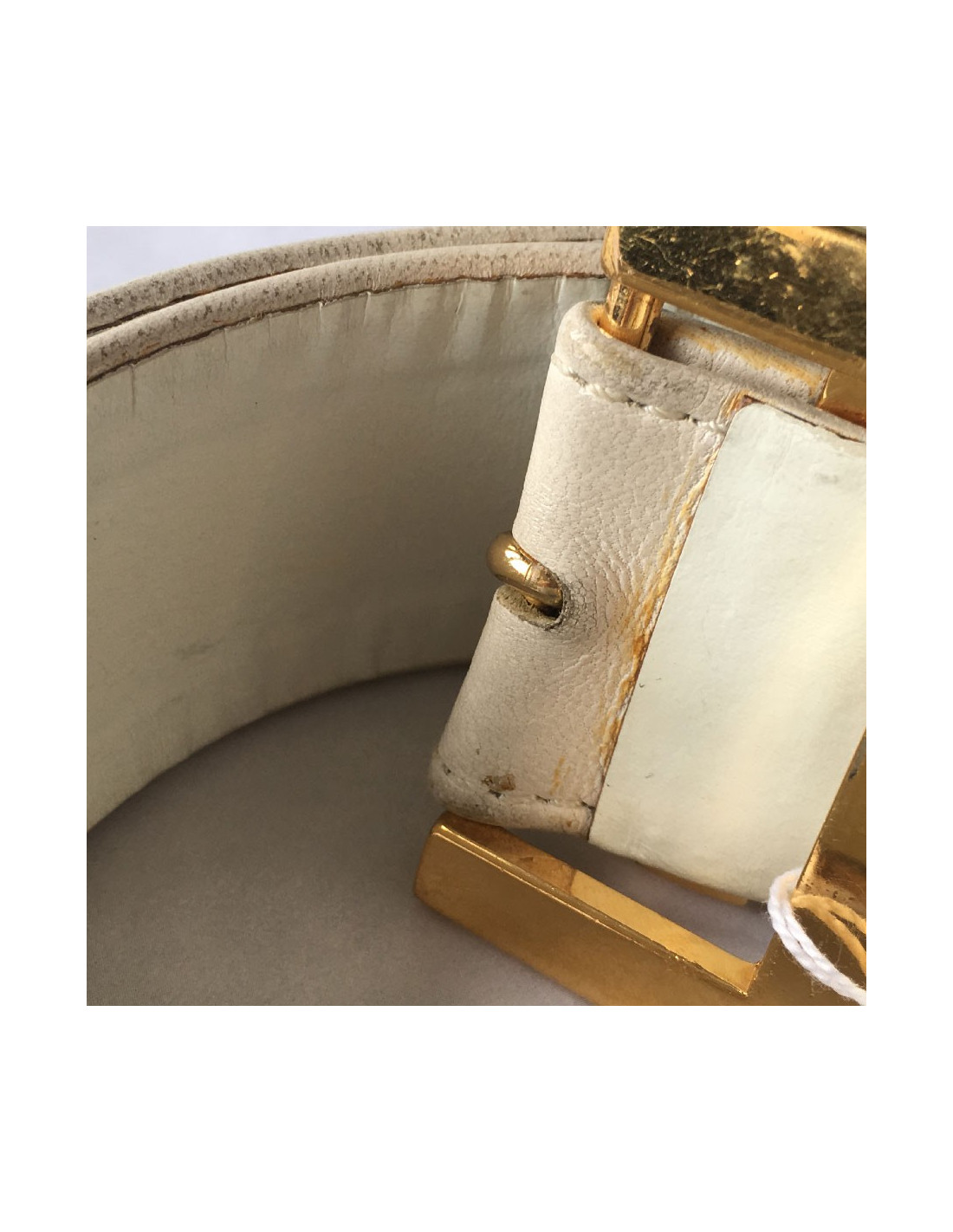 CHANEL vintage belt in white leather and gilded metal chain