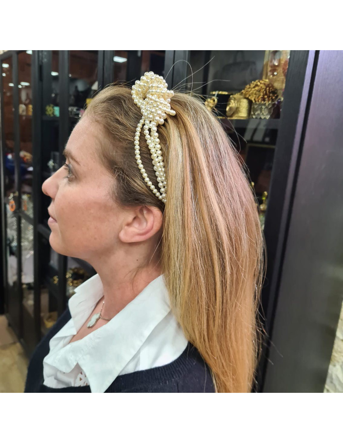 Last items in stock HAIR JEWELRY MAISON MICHEL light gold chain and pearly beads headband CHANEL 34632 320.00 € MAISON MICHEL light gold chain and pearly beads headband Condition : very goodMaterials: metal, plated chainColors : light gold, beigeMeasurements : 57 cmDetails : 57 cm headband, stretchable thanks to an elastic band in the fabric. 6 interwoven rows. Add to cart