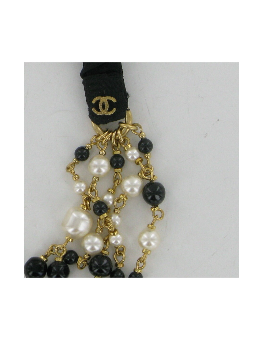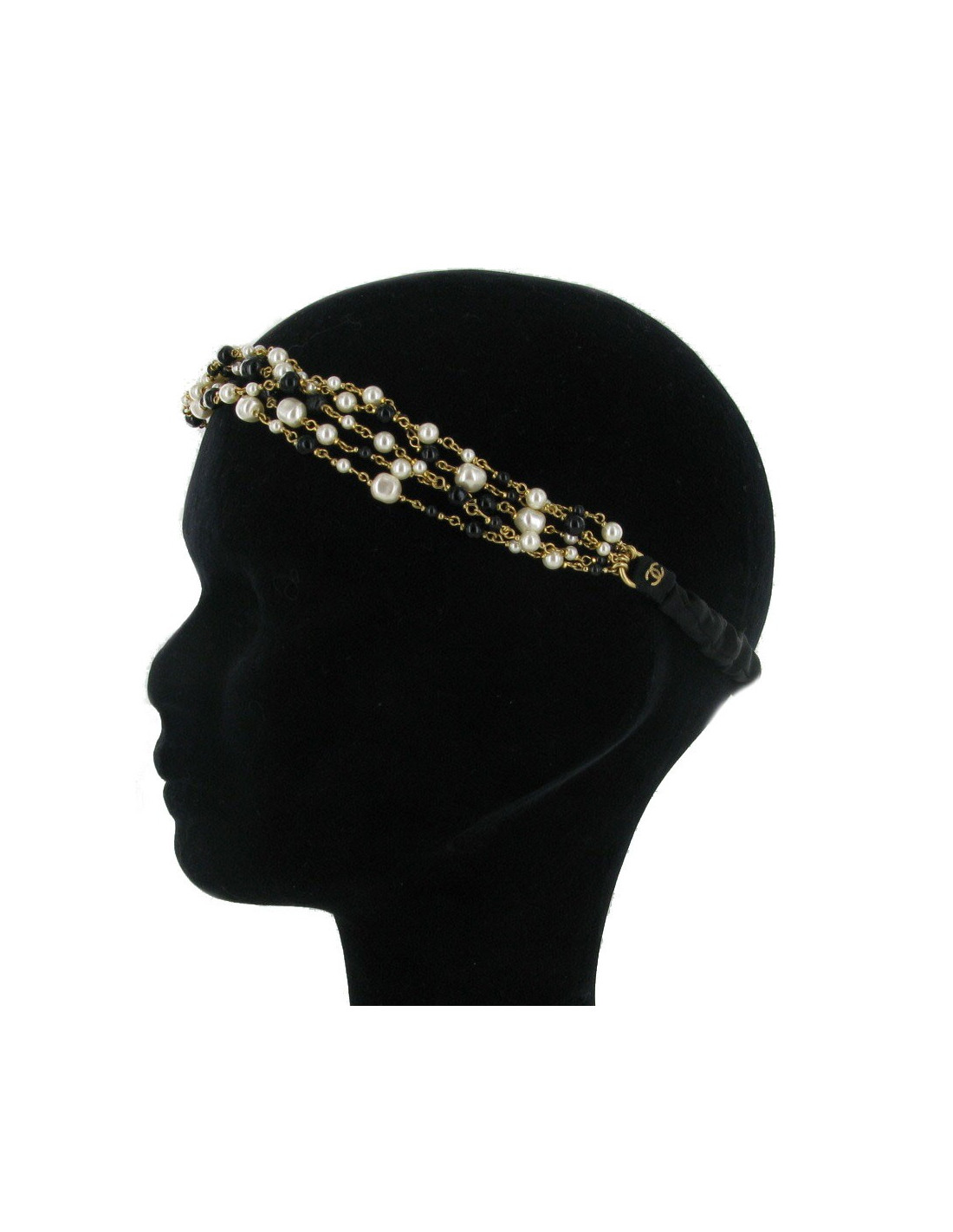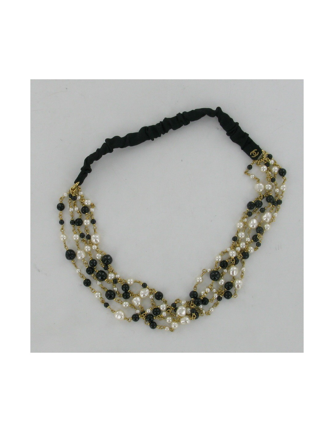 Headband CHANEL with 5 rows of pearls black and Pearly