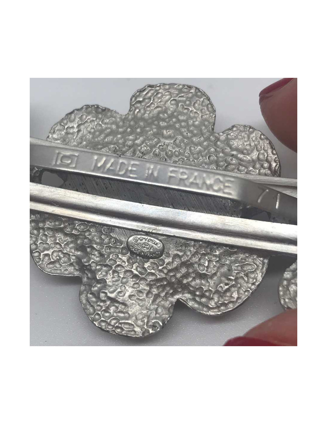 Last items in stock HAIR JEWELRY Chanel Hair Clip CHANEL 35724 420.00 € Chanel hair accessory little CC Condition: excellentMade in FranceMaterial : gilded metal, pearlColour : pale gold, silverDimensions : length 8 cm Add to cart