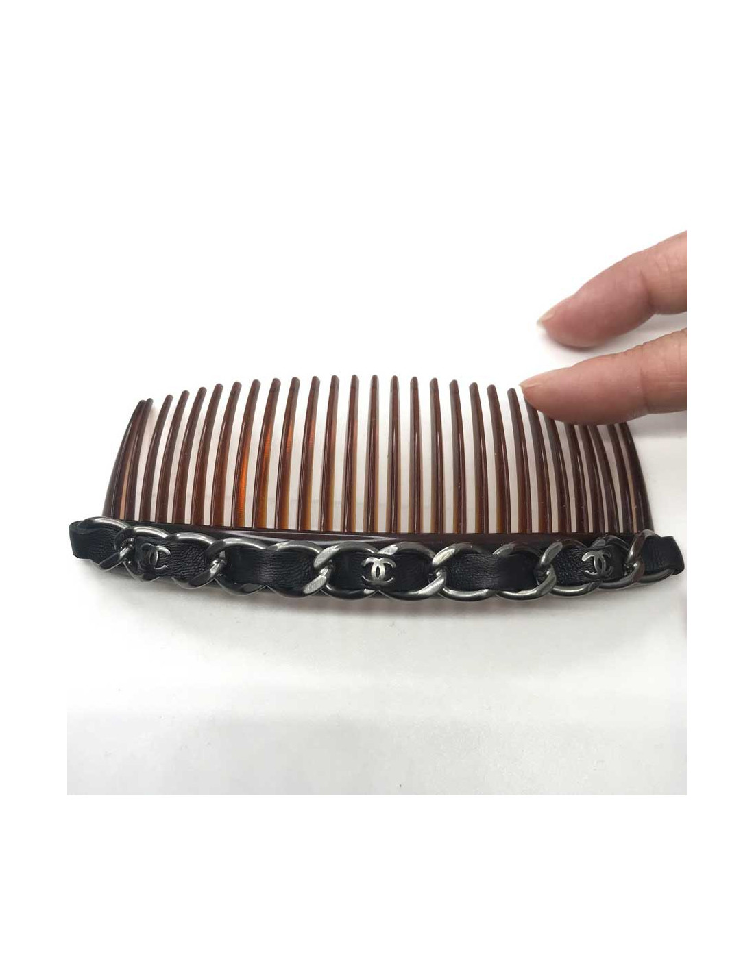 Last items in stock HAIR JEWELRY CHANEL hair-clip in quilted purple leather CHANEL 14737 340.00 € Chanel clip-hair in quilted purple leather. The brand CHANEL appears on the side. The dimensions are: length: 10.5 cm, width: 6 cm. Will be delivered in a new, non-original dust bag Add to cart