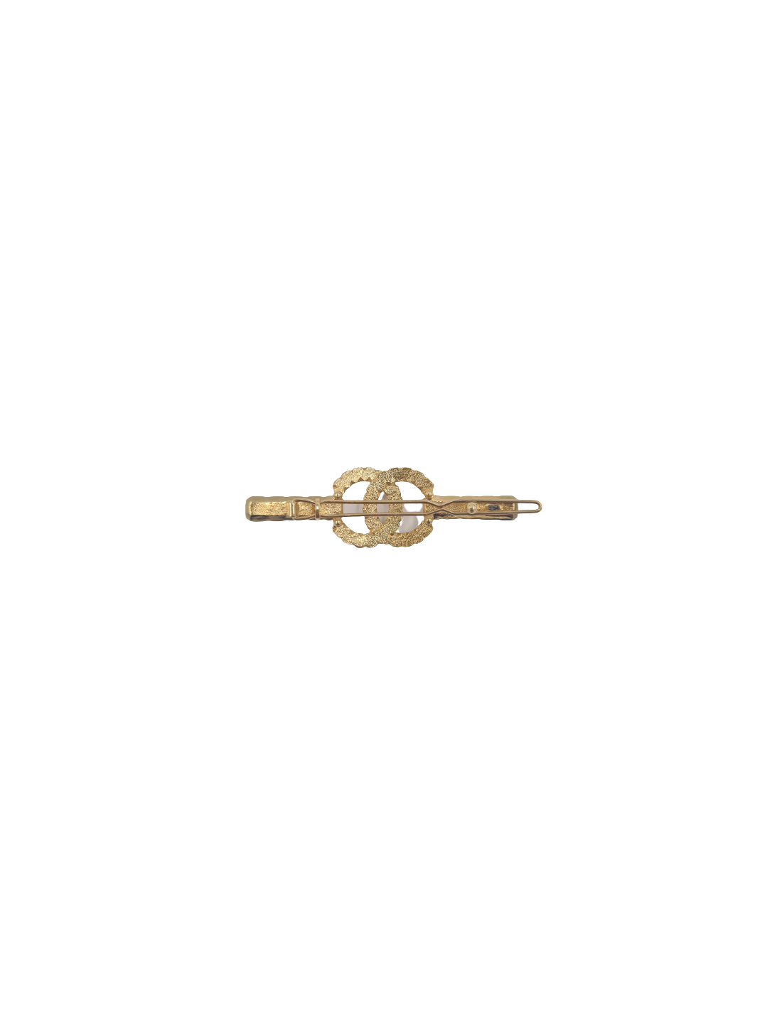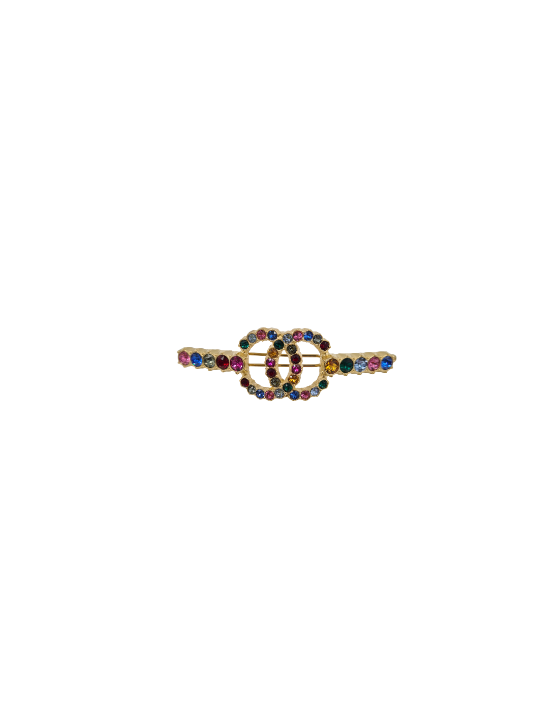CHANEL CC Hair Clip in Gilt Metal and Multicolored Rhinestones