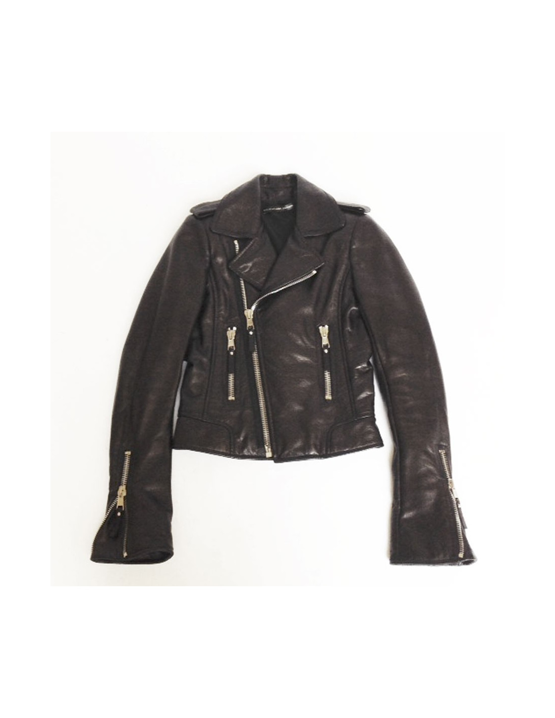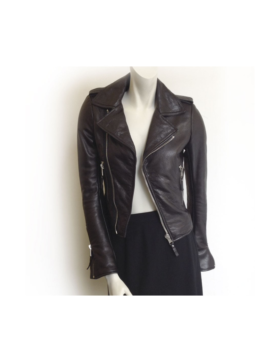 Perfecto lambskin Balenciaga T 36. It has zips on each sleeve as well as the two pockets of each side of the jacket. In very good condition.
