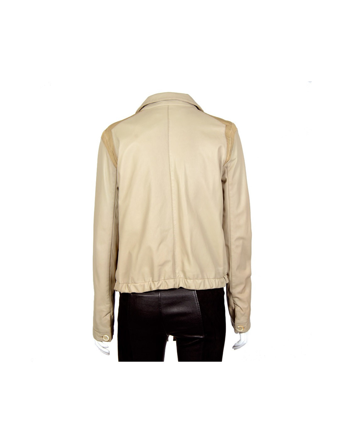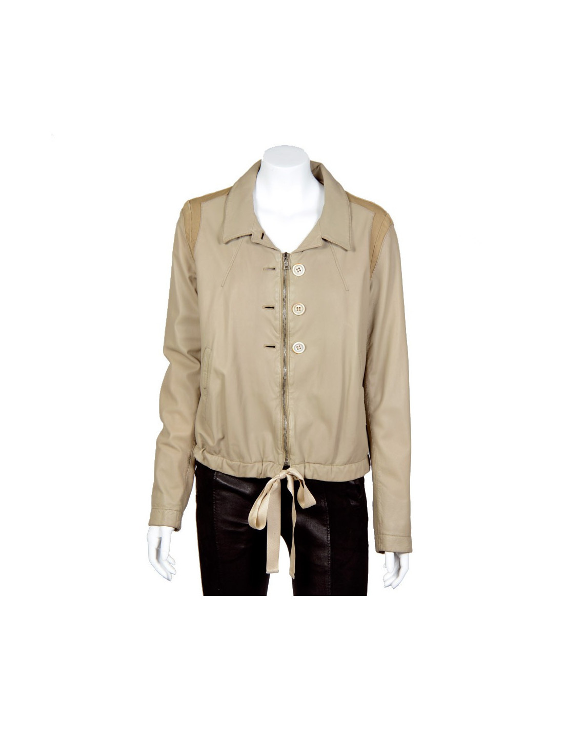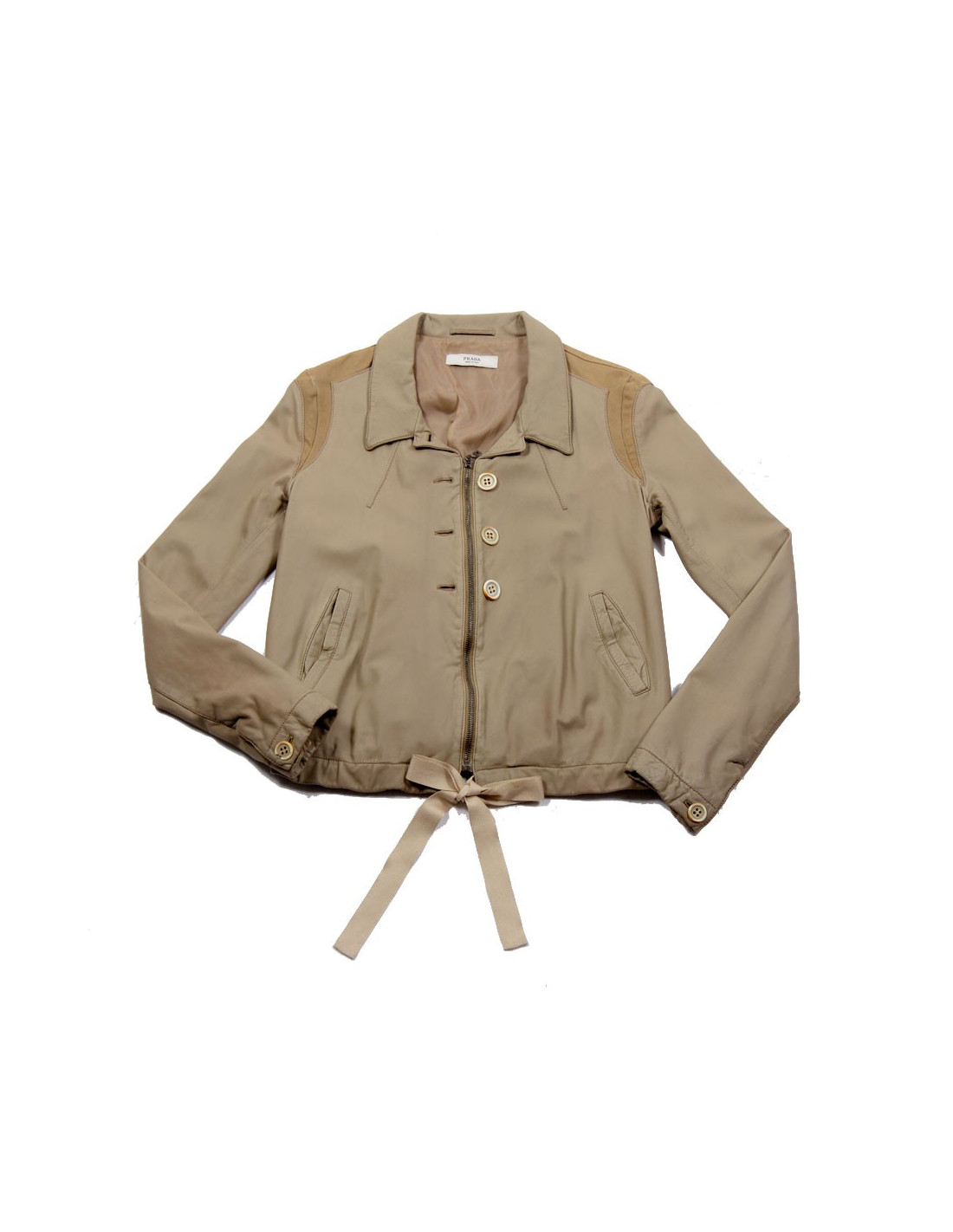 Jacket Prada beige lambskin. Size 44 Italian is equivalent to a 40 french. Zipper closure. It is shed at the bottom with a Ribbon. One flat on each side pocket. In very good condition.