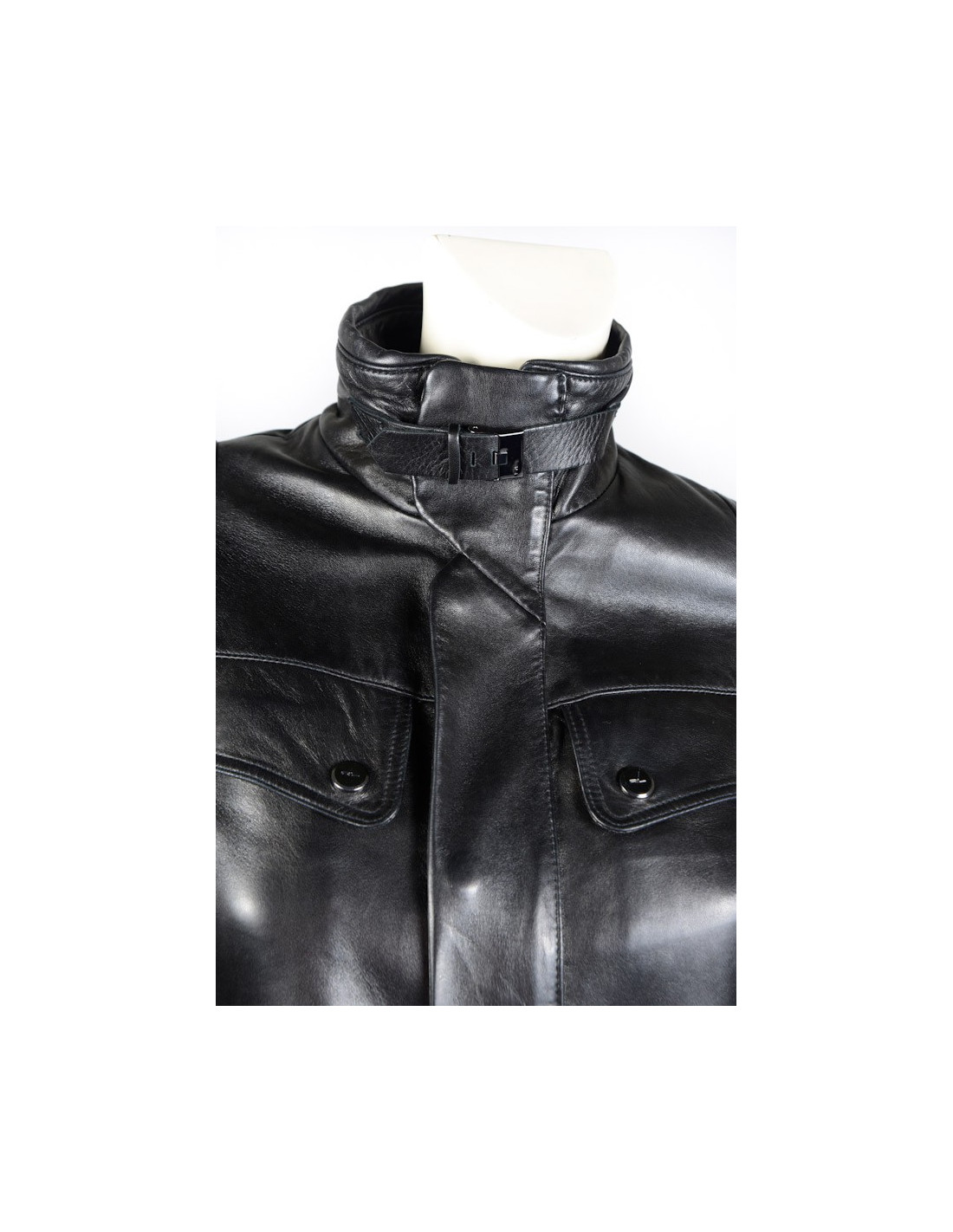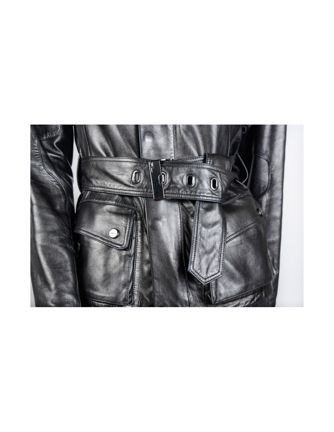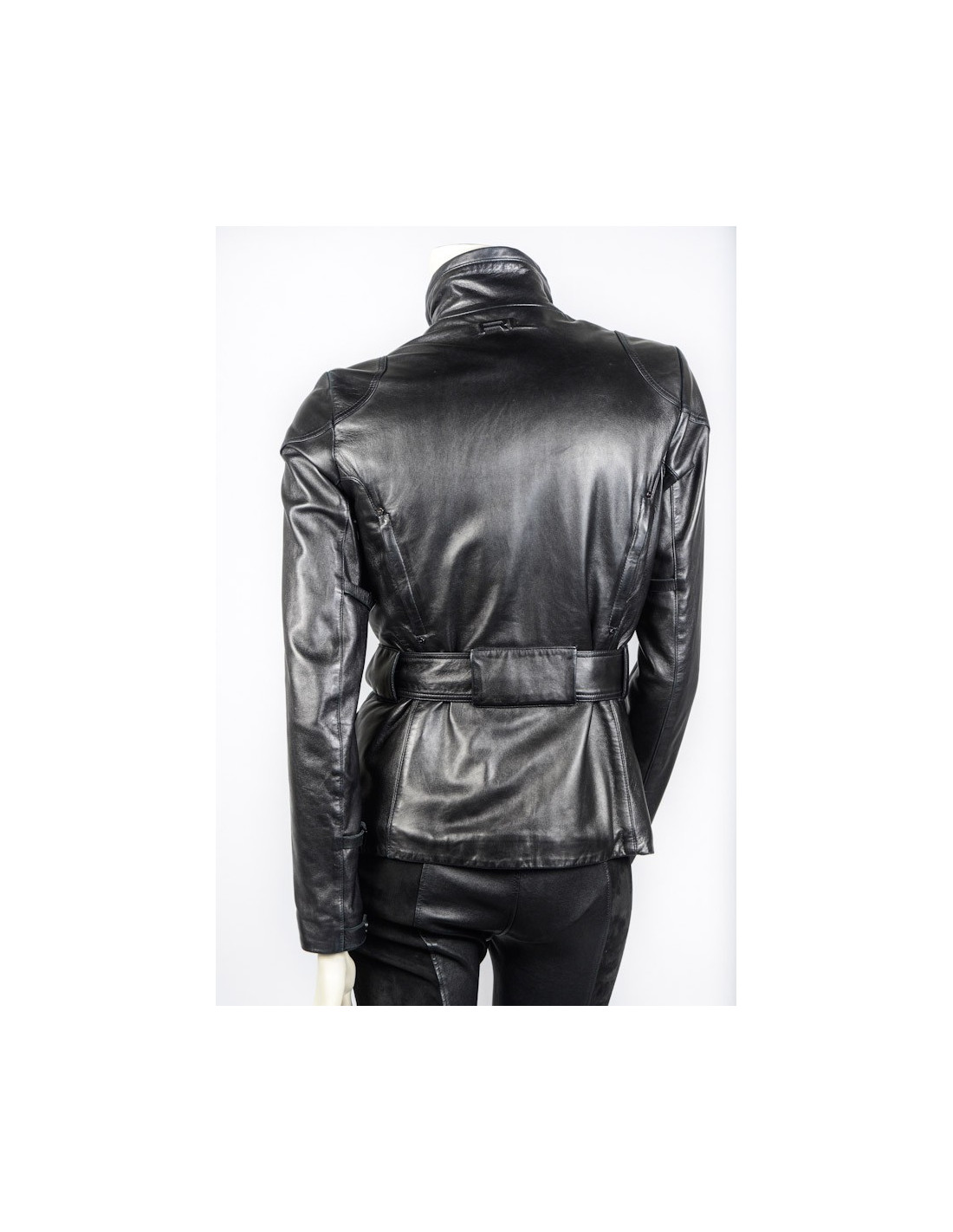 Jacket Ralph Lauren black lambskin leather. Lining padded. Zip closure and pressure. 4 pockets on the front. An adjustable belt just tighten the size. Size 2. In very good condition.