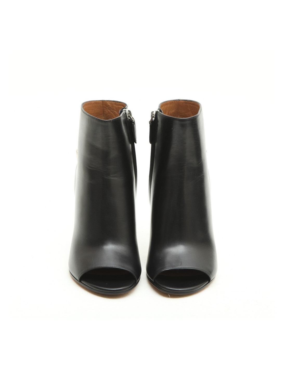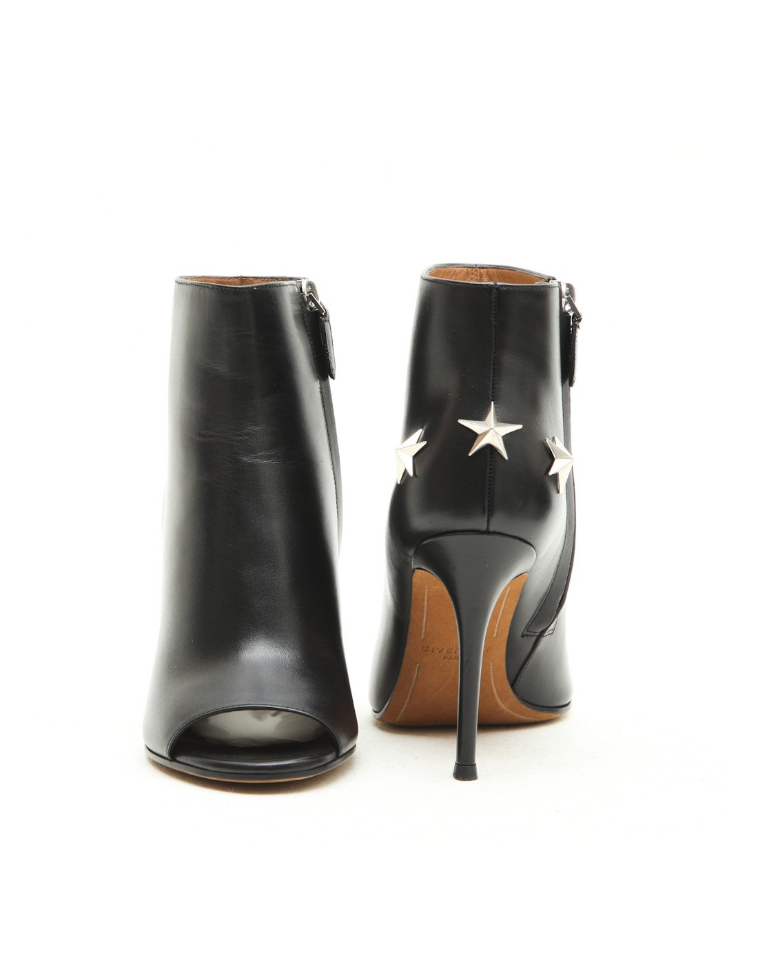 Givenchy open toe high heels boots in black leather. Size 36. Zip closure at the back. 3 silver stars in the back.