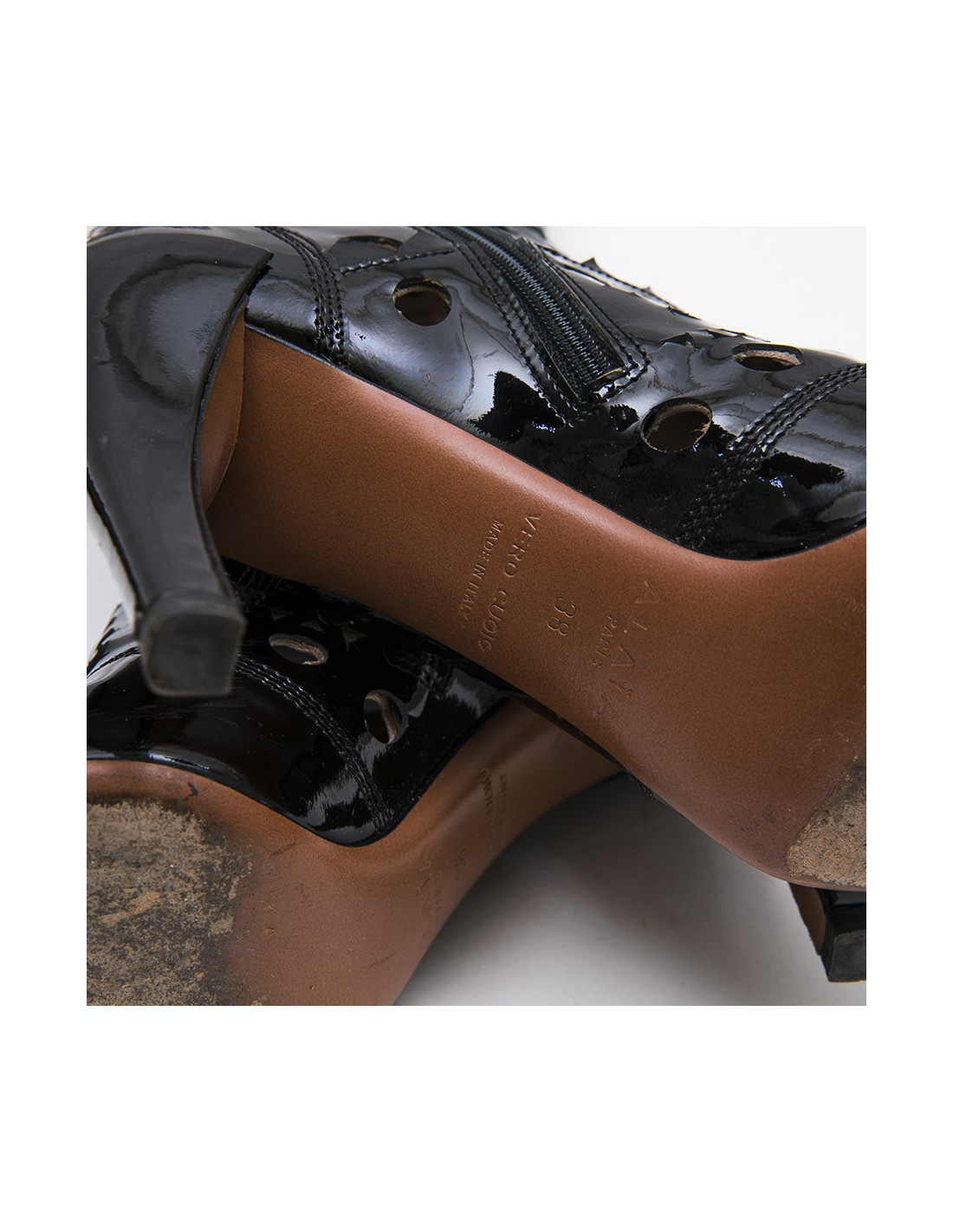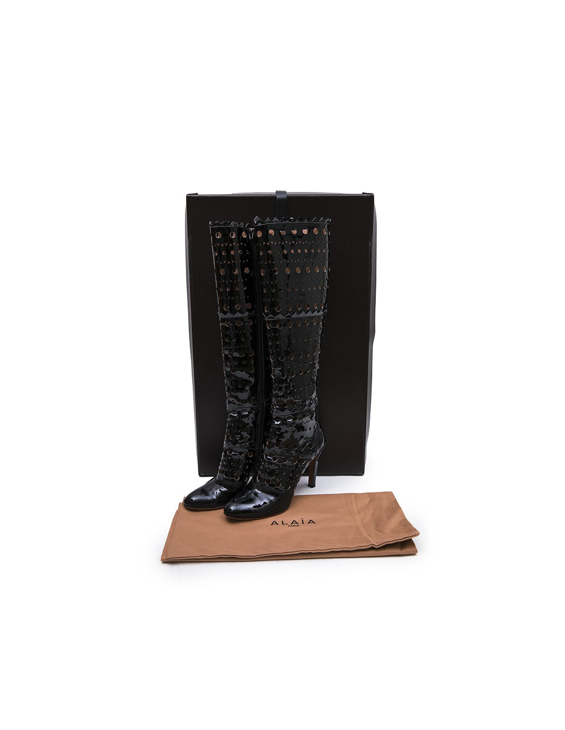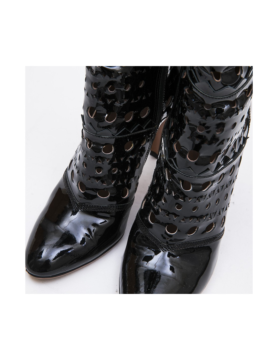 Alaïa boots in black patent perforated leather. Size 38. Zip closure inside the boot.