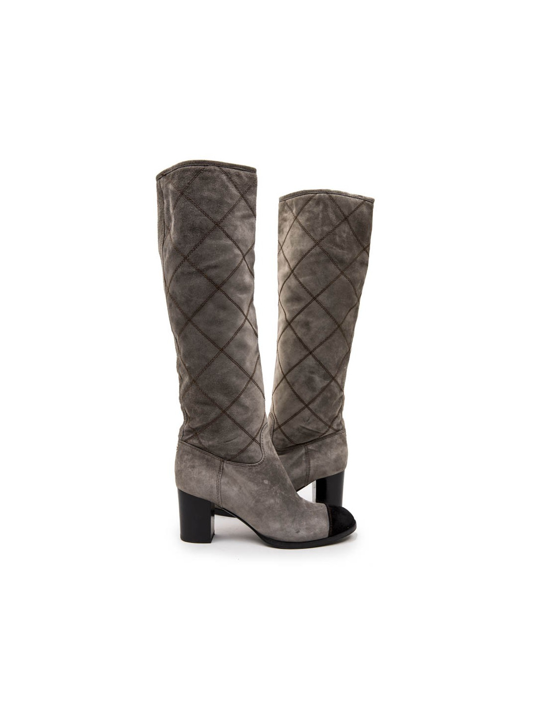 CHANEL boots in pearl gray quilted velvet calfskin size 39.5