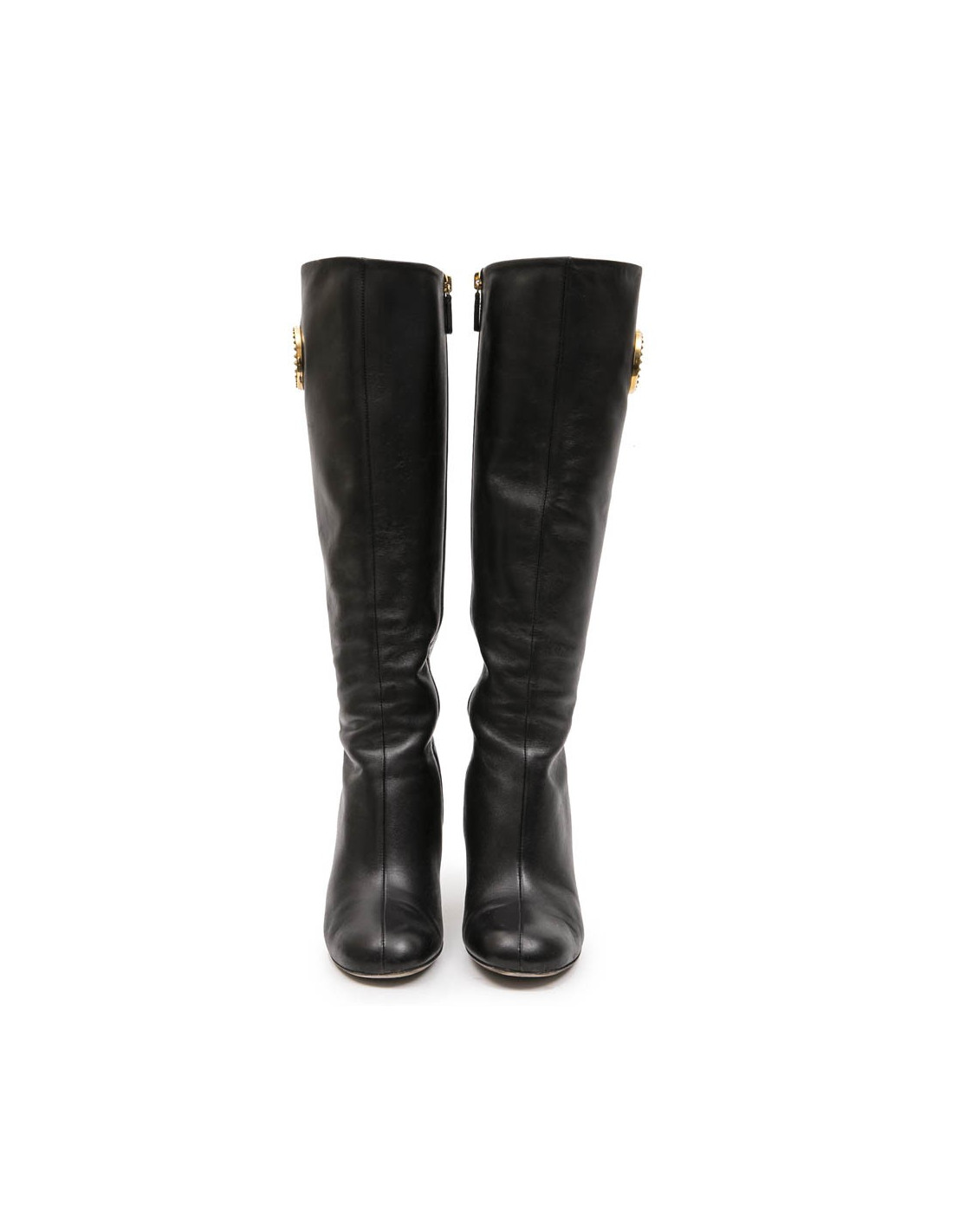 Last items in stock BOOTS CHANEL boots with removable white gaiters size 37FR CHANEL 33529 2,500.00 € CHANEL Collector boots with removable white gaiters size 37FR Condition :very goodMade in ItalySerial number : G38...Material : leatherColors : white, black, goldSize : 37Hardware : gold finish metalMeasurements : Heel : 4,5 cm, uper : 42 cmDetails : quilted removable gaiters with. Black stripe along the ankle with CHANEL written on it. Collector's... Add to cart