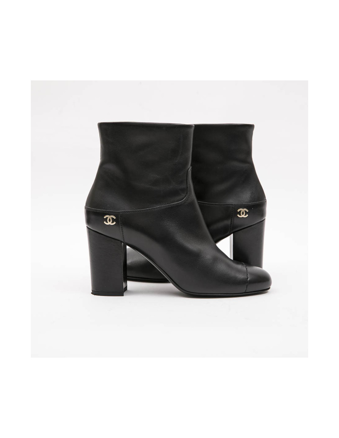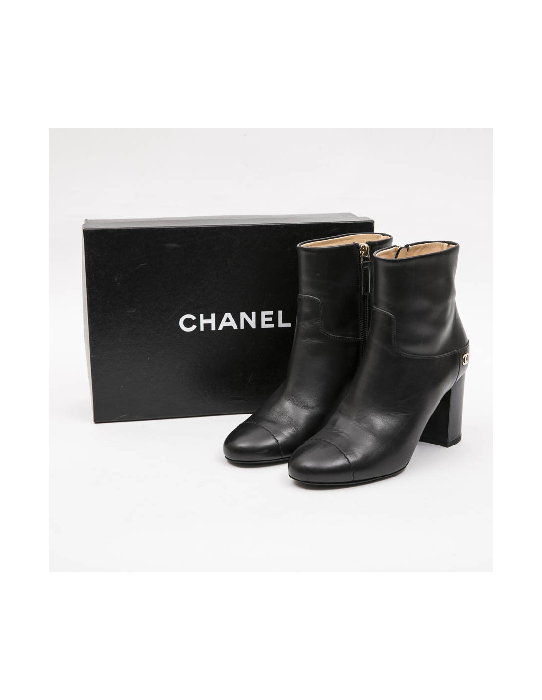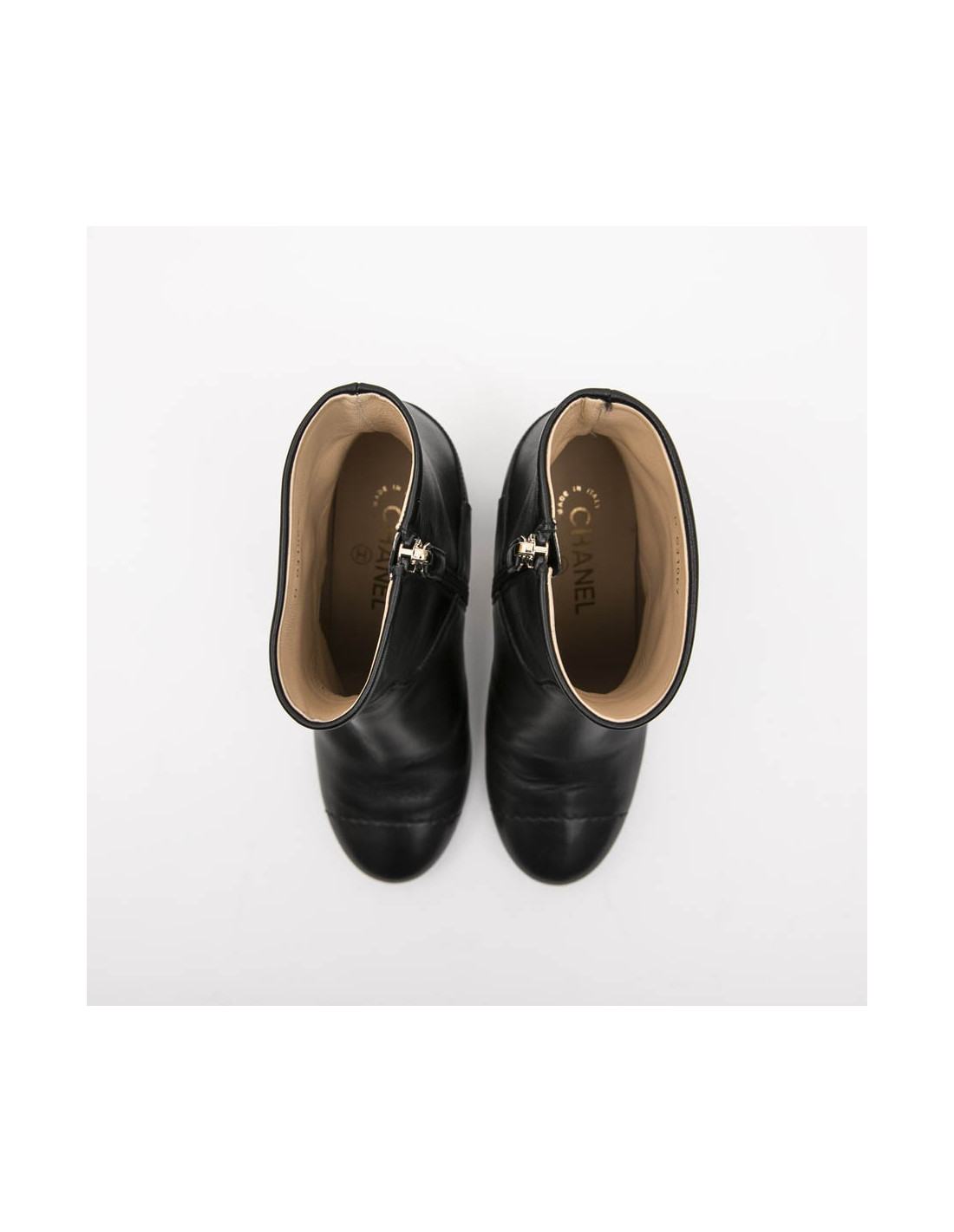 Chanel boots in black lamb leather. They are lined in beige leather.