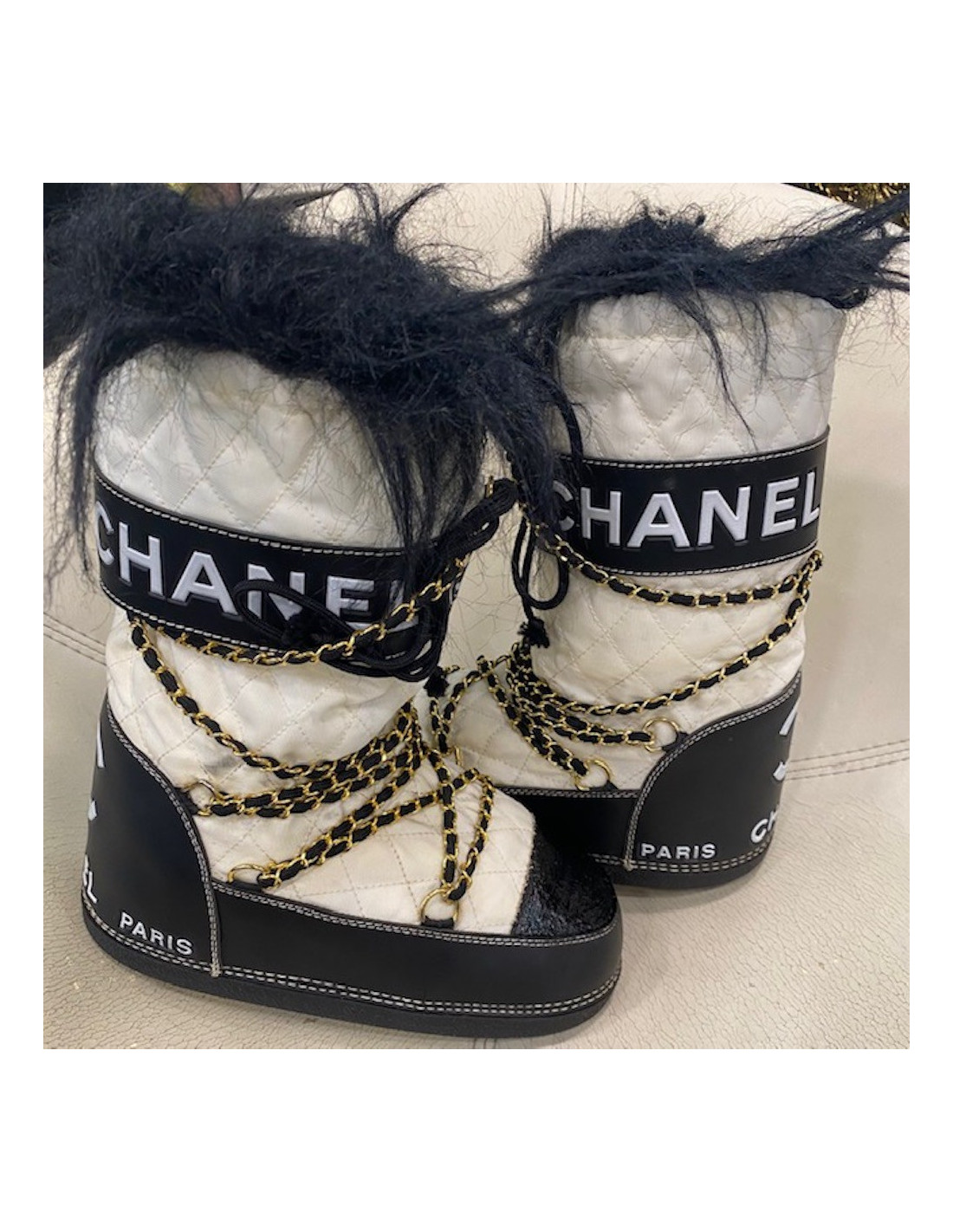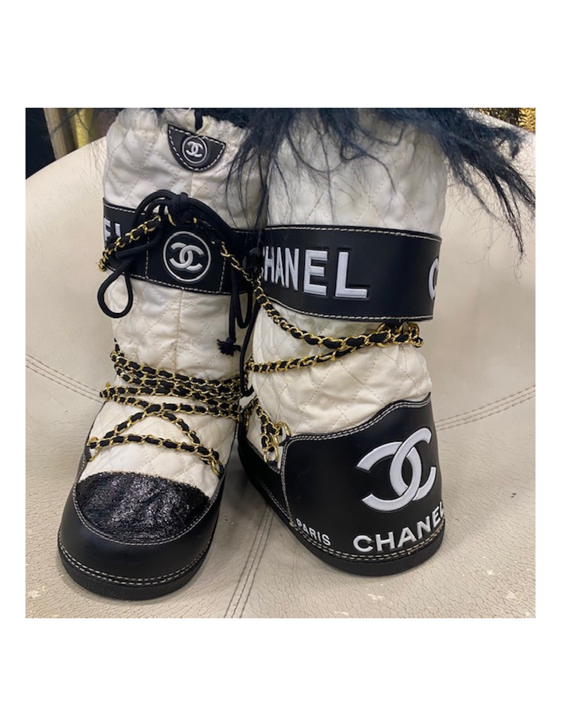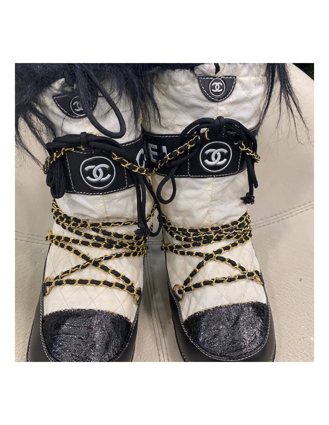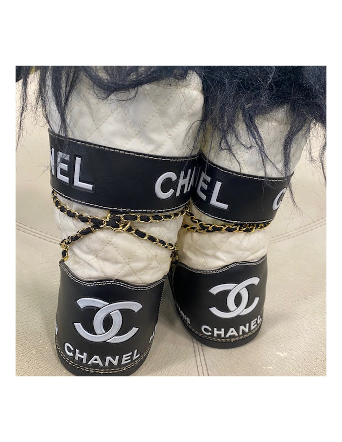 Last items in stock BOOTS CHANEL boots with removable white gaiters size 37FR CHANEL 33529 2,500.00 € CHANEL Collector boots with removable white gaiters size 37FR Condition :very goodMade in ItalySerial number : G38...Material : leatherColors : white, black, goldSize : 37Hardware : gold finish metalMeasurements : Heel : 4,5 cm, uper : 42 cmDetails : quilted removable gaiters with. Black stripe along the ankle with CHANEL written on it. Collector's... Add to cart