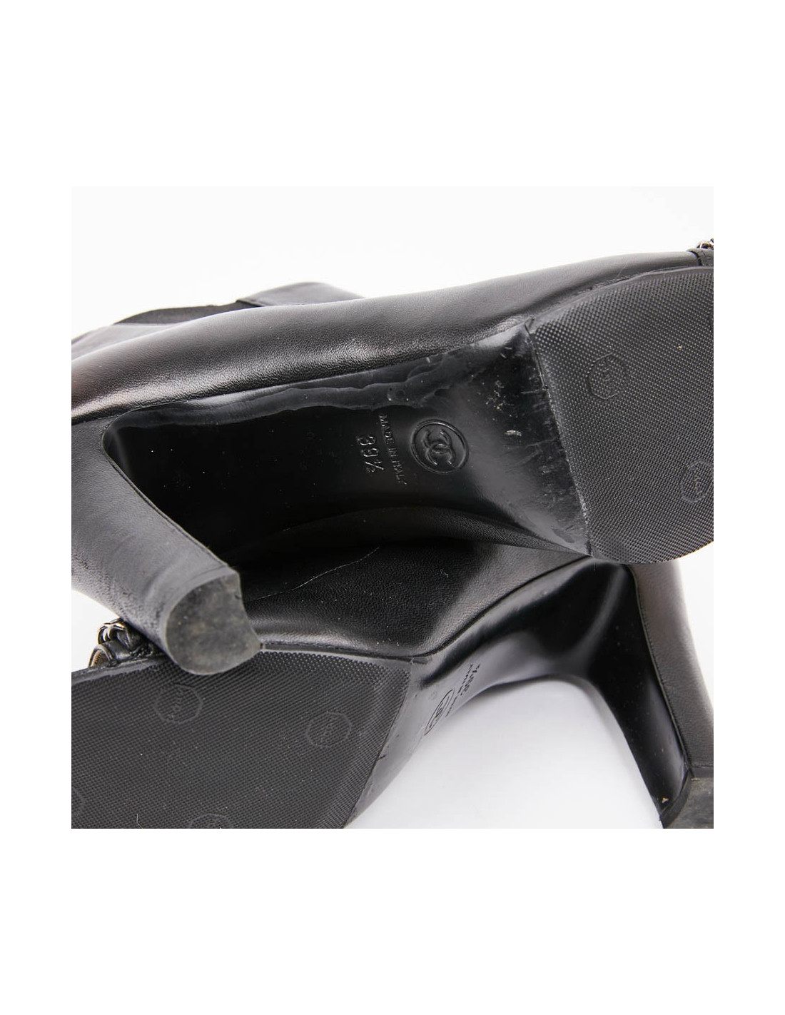 Last items in stock BOOTS CHANEL black patent leather mid-length boots size 36,5 CHANEL 16926 490.00 € CHANEL black patent leather mid-length boots size 36,5 Condition: goodModel: low bootsMaterials: patent leatherLining: turquoise blue leatherColor: blackMeasurements: heel 8.5 cm, outsole: 7 cm Details: Lovely Chanel mid-boots, size 36.5, in black patent leather. They are in good condition (despite a topy and at the instep crease the patent is cut), the... Add to cart