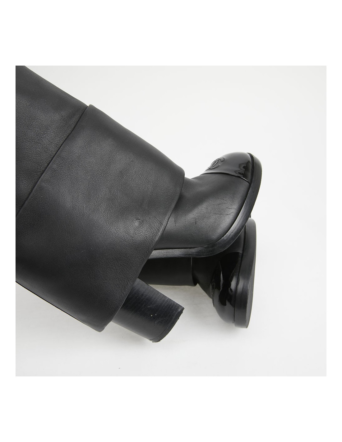 Last items in stock BOOTS PRADA black aged leather boots size 39,5 PRADA 22166 180.00 € Prada black grained aged leather boots size 39,5FR Condition : very goodMeasurements :Heel 10 cm; platform 1.5 cm; length with cuff 10 cm; length without cuff 16 cmDetails: with peep-toe detail and plateform. Add to cart