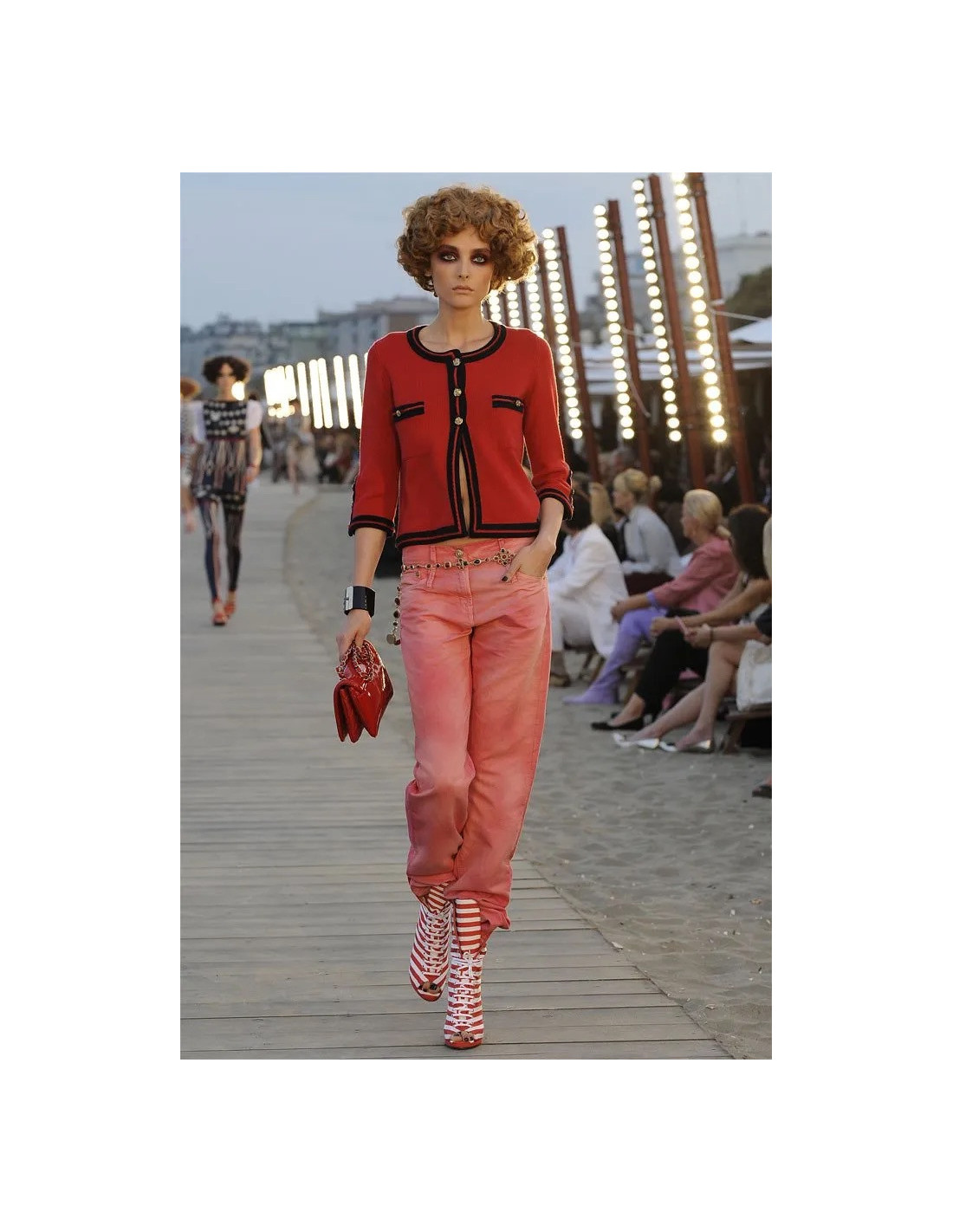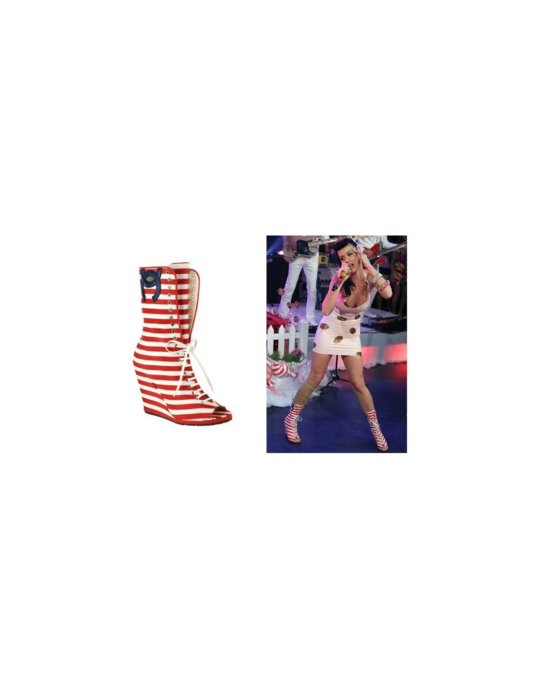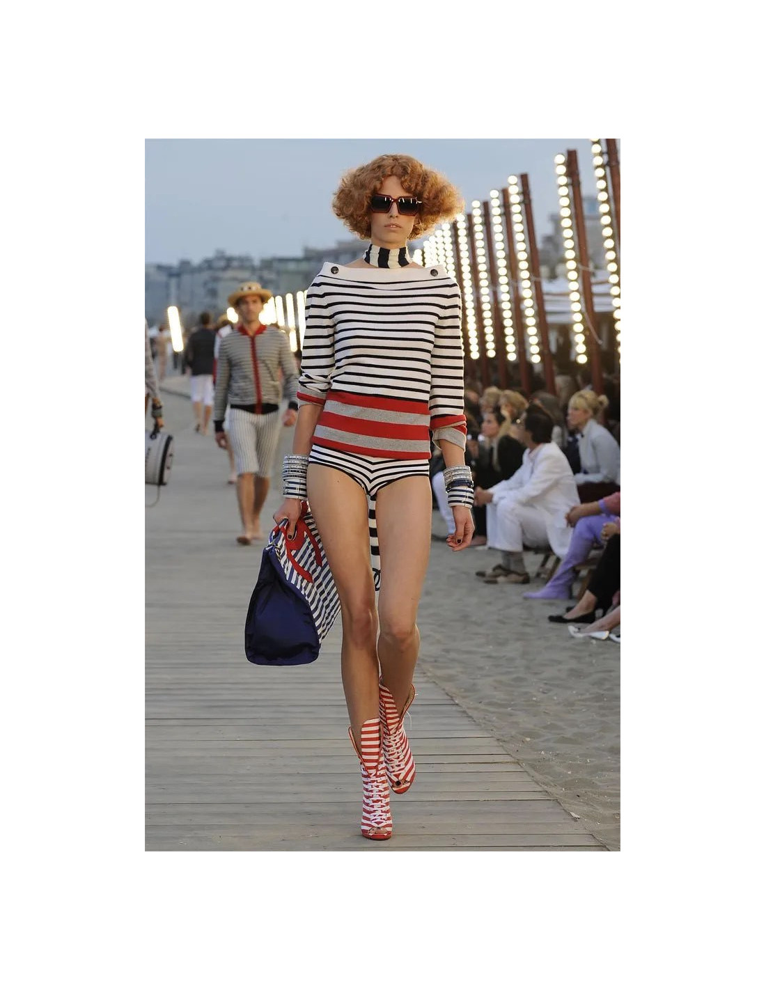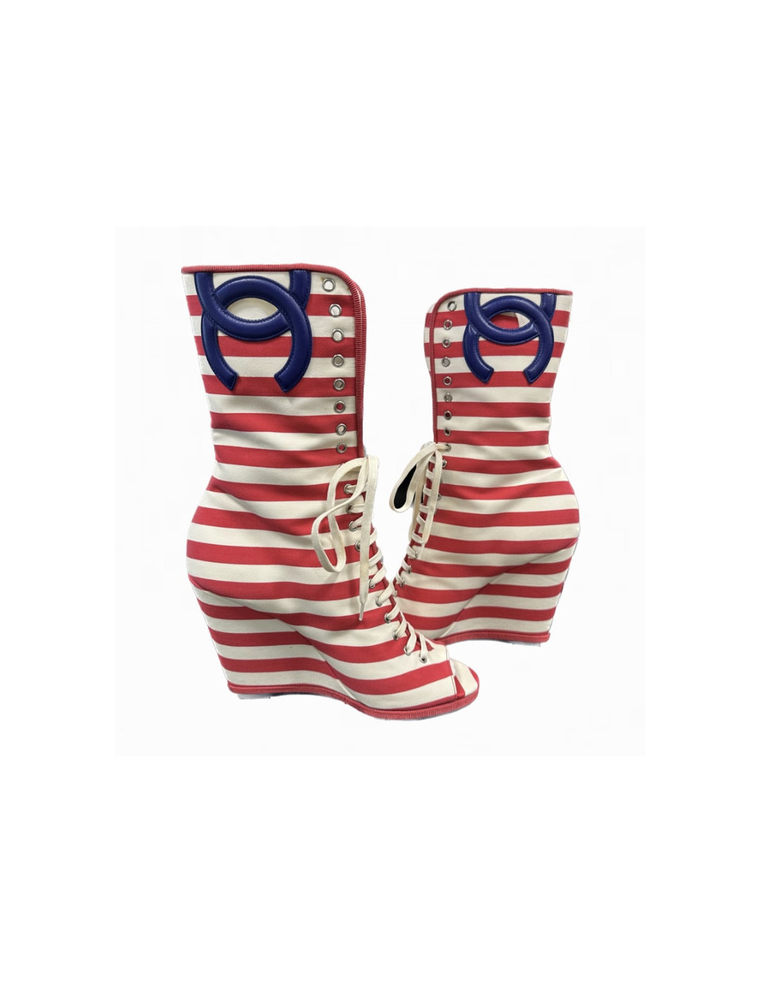 CHANEL pink and white striped open-toe boots, Cruise Paris-Venise