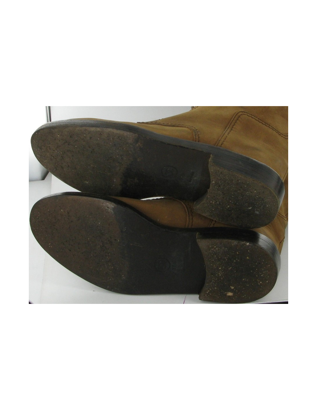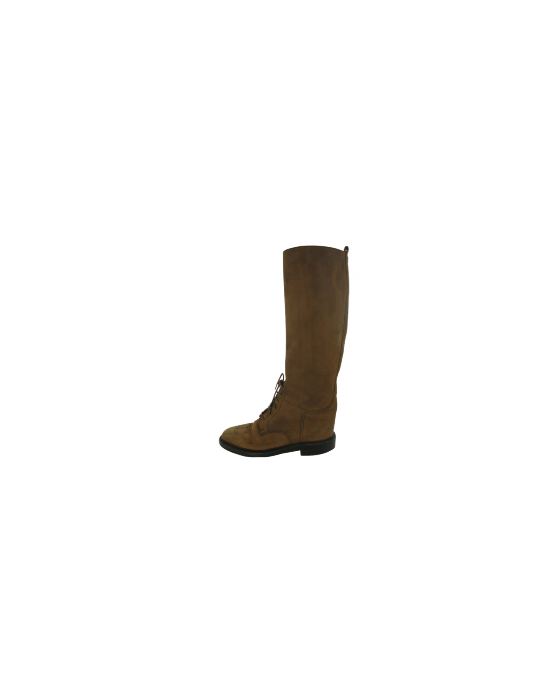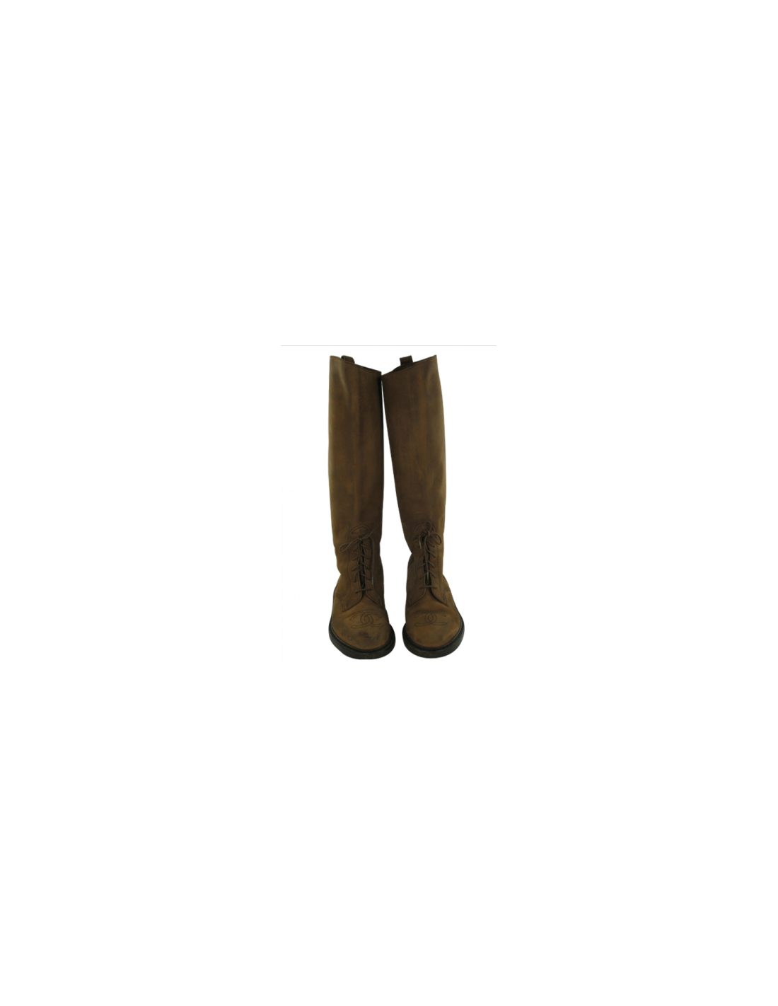 Great boots on T37.5 CHANEL brown leather laces. These beautiful boots are in need of a thorough cleaning on the outside leather. Thick sole leather, stitching. In good condition.