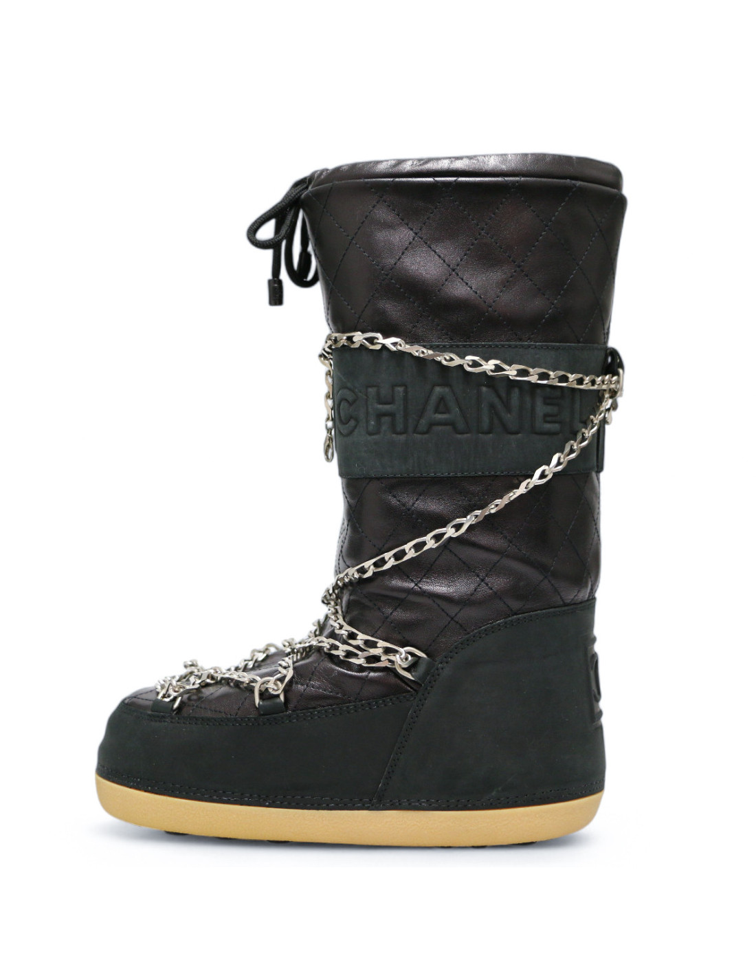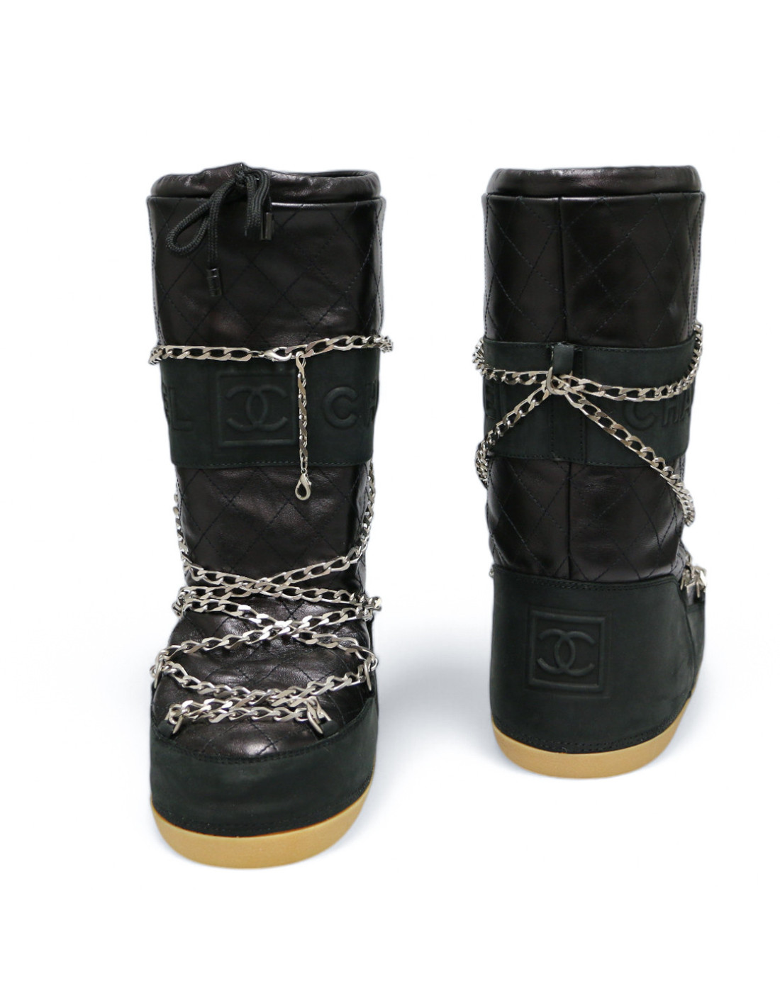 Last items in stock BOOTS CHANEL boots with removable white gaiters size 37FR CHANEL 33529 2,500.00 € CHANEL Collector boots with removable white gaiters size 37FR Condition :very goodMade in ItalySerial number : G38...Material : leatherColors : white, black, goldSize : 37Hardware : gold finish metalMeasurements : Heel : 4,5 cm, uper : 42 cmDetails : quilted removable gaiters with. Black stripe along the ankle with CHANEL written on it. Collector's... Add to cart
