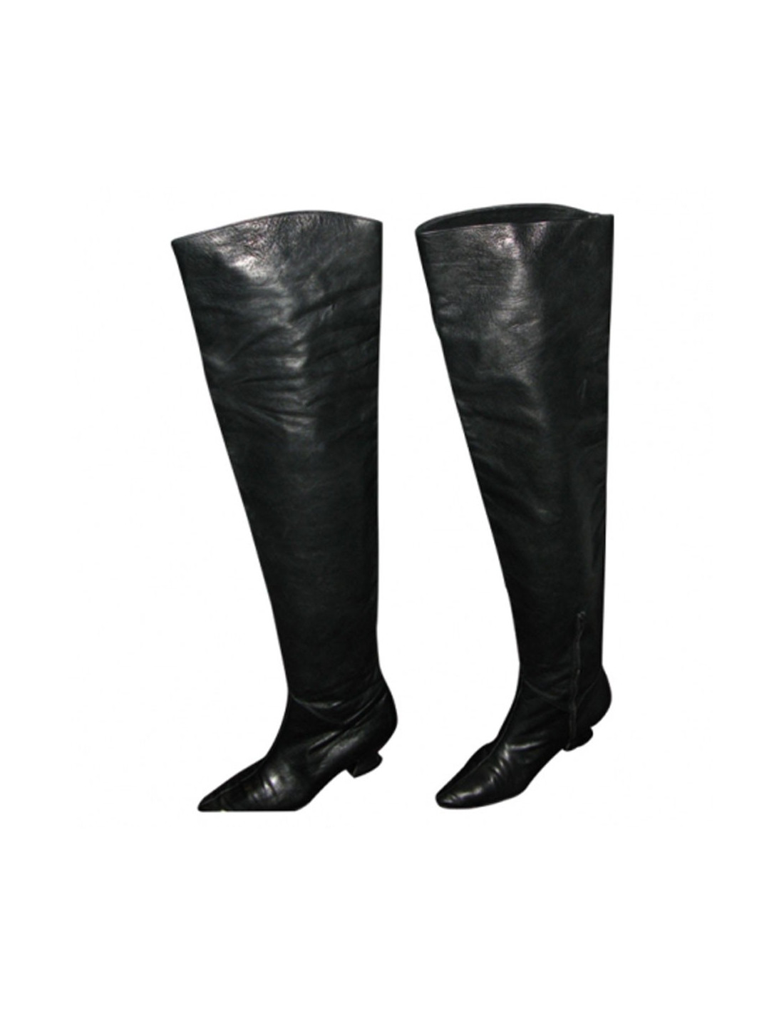 Waders in black leather Chanel t 40, can be worn slightly returned on the thigh (see photo) slight traces on the leather, the heel has been replaced, small iron at the end of the shoe that can be removed.