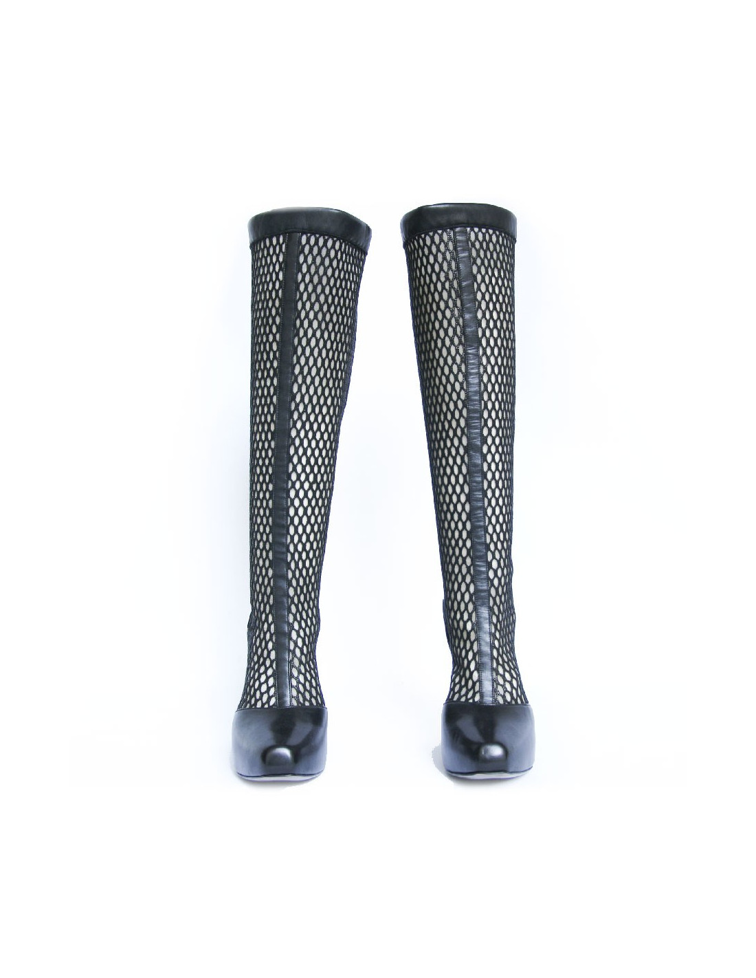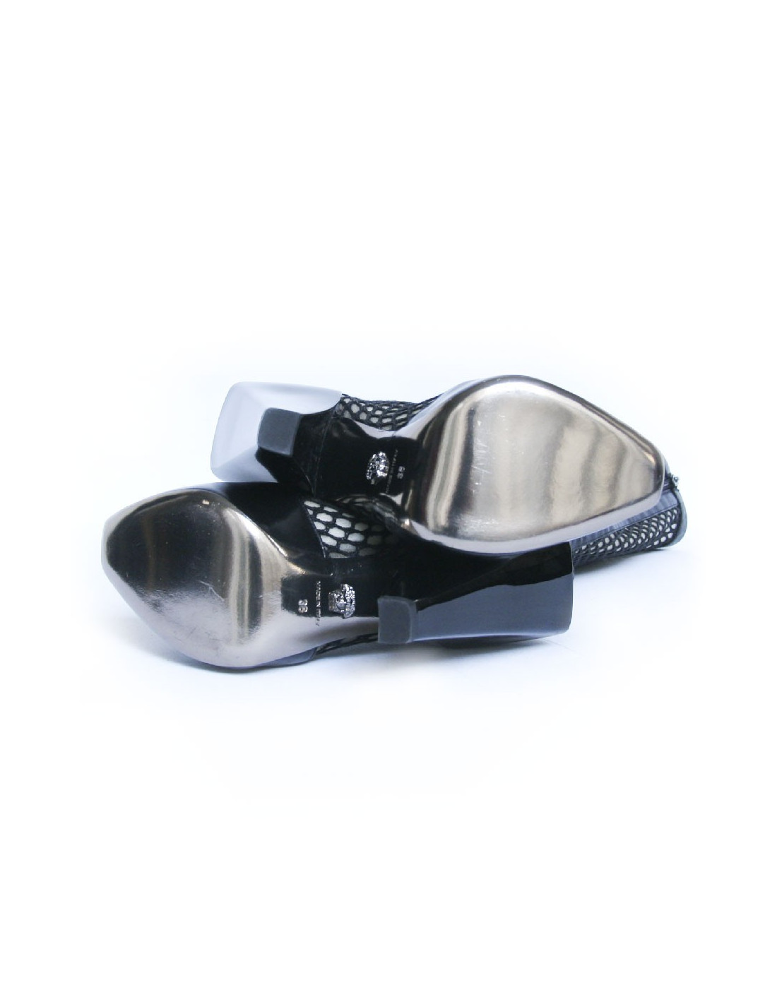 Very trendy! Versace leather boots and lace plastic honeycomb size 38, in very good condition. They would not close a zipper leaving heel calf, in the back.