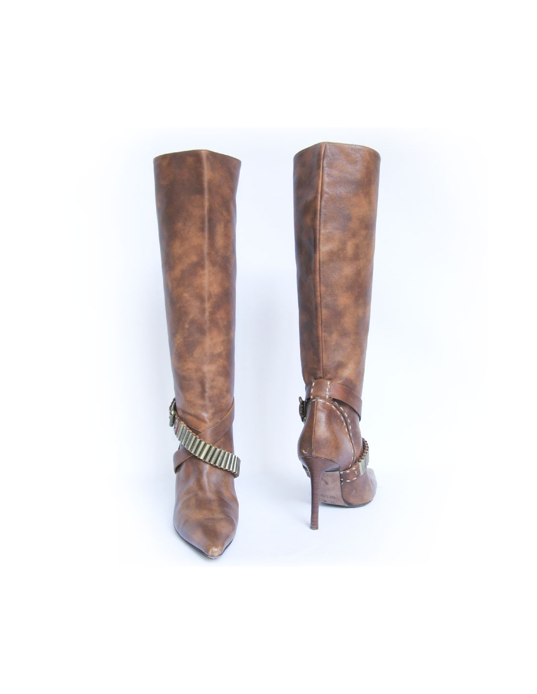 Pair of boots with heels Céline mouchette brown leather. Size 37 B. The tip is pointed. In very good condition. The tip of the boots leather is very slightly weathered.