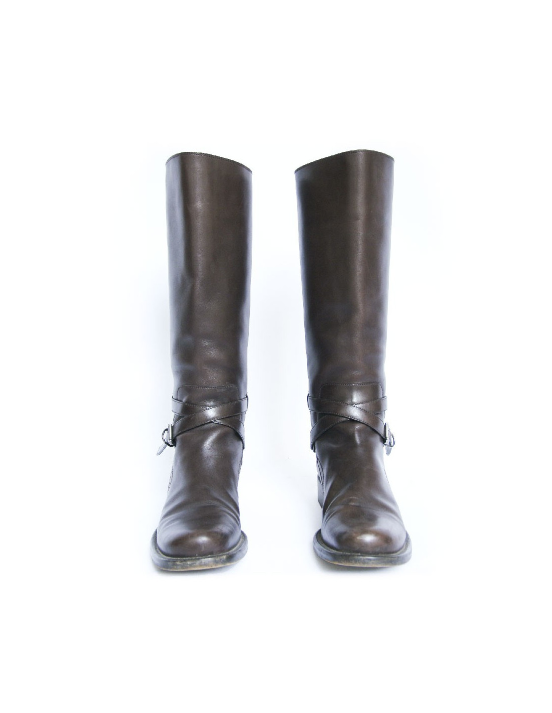 Pair of Prada brown leather flat boots. Size 37.5. Very good condition. Very slight wear of the leather on the end of both boots as well as a few light scratches very little visible on boot.