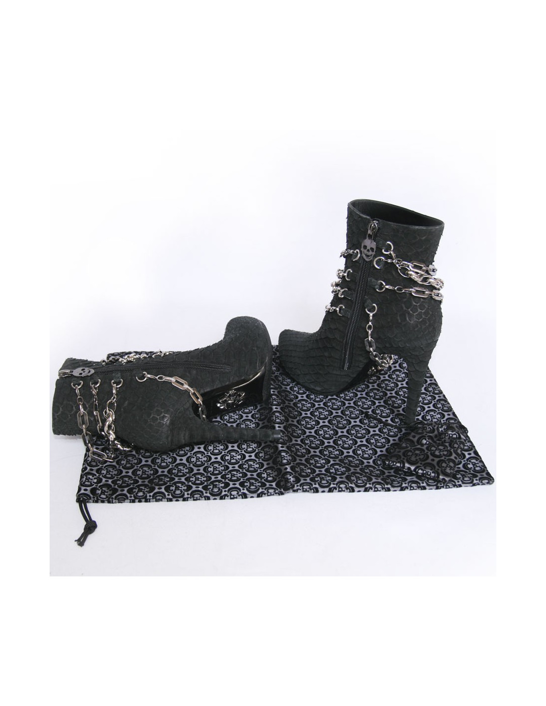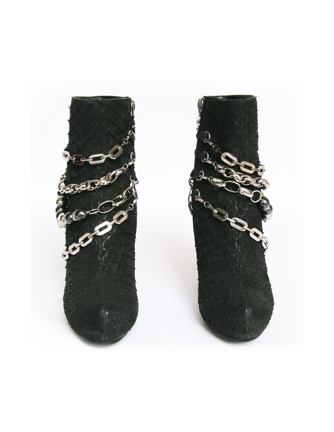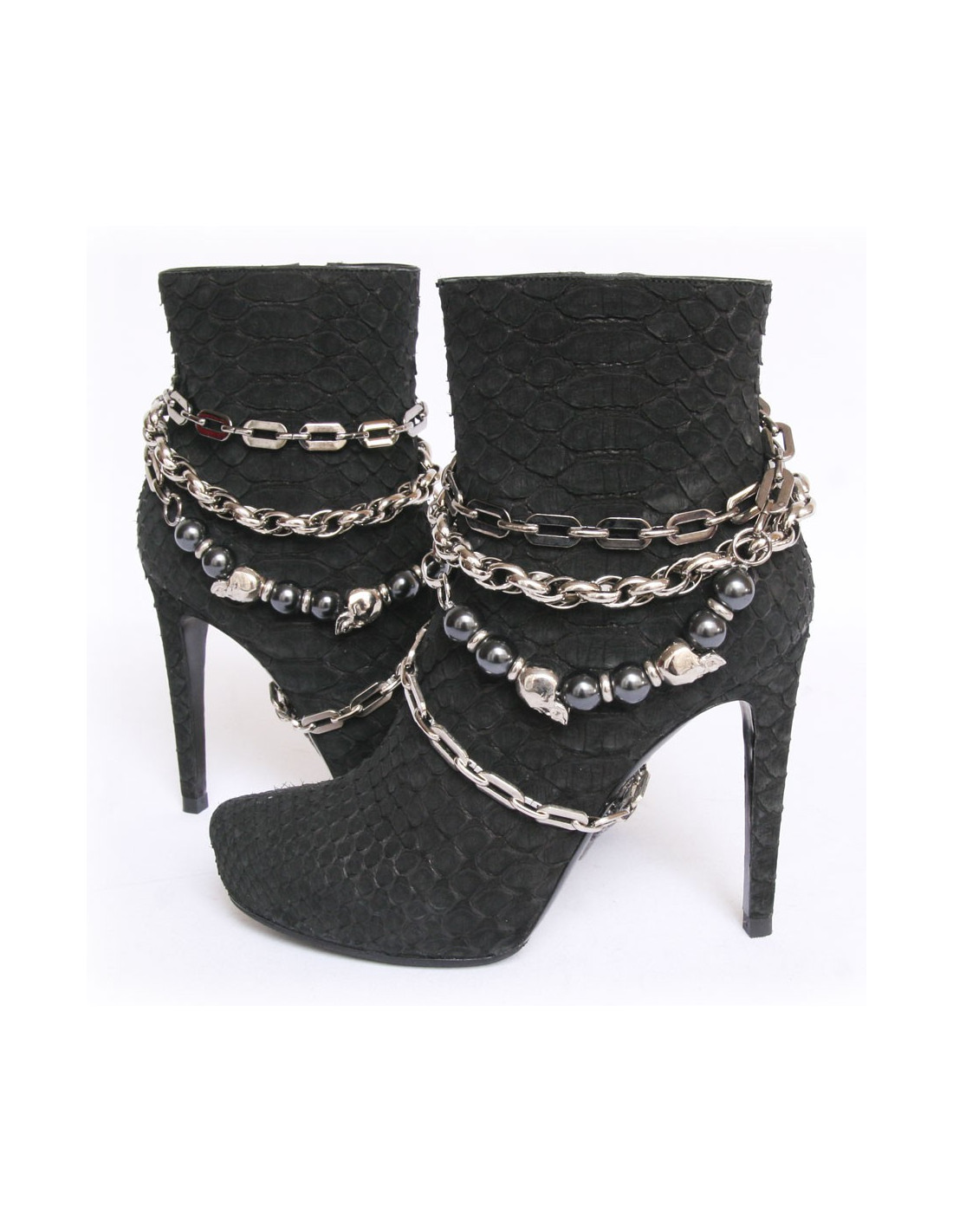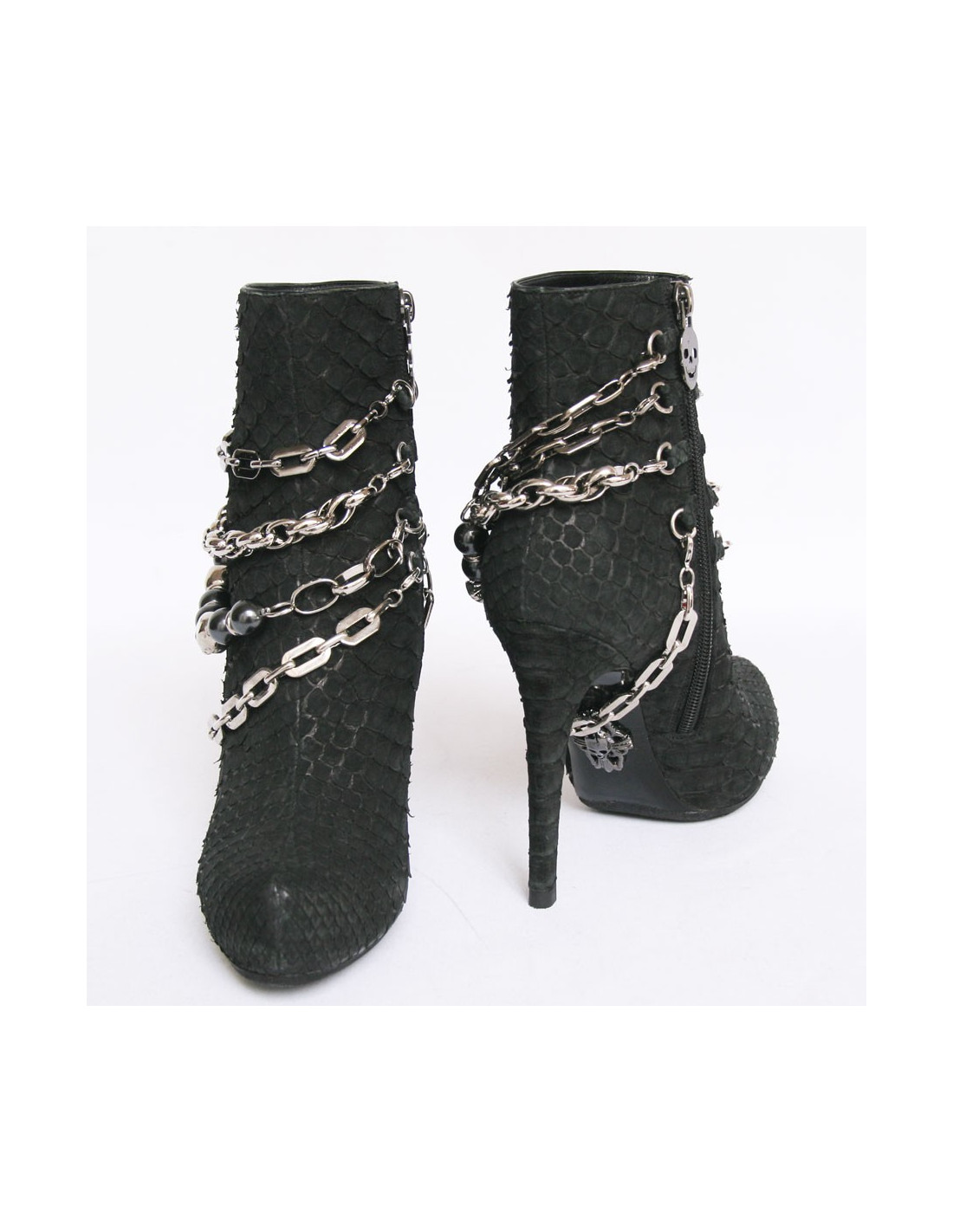 PHILIPP lot T37 silver chains and black python boots