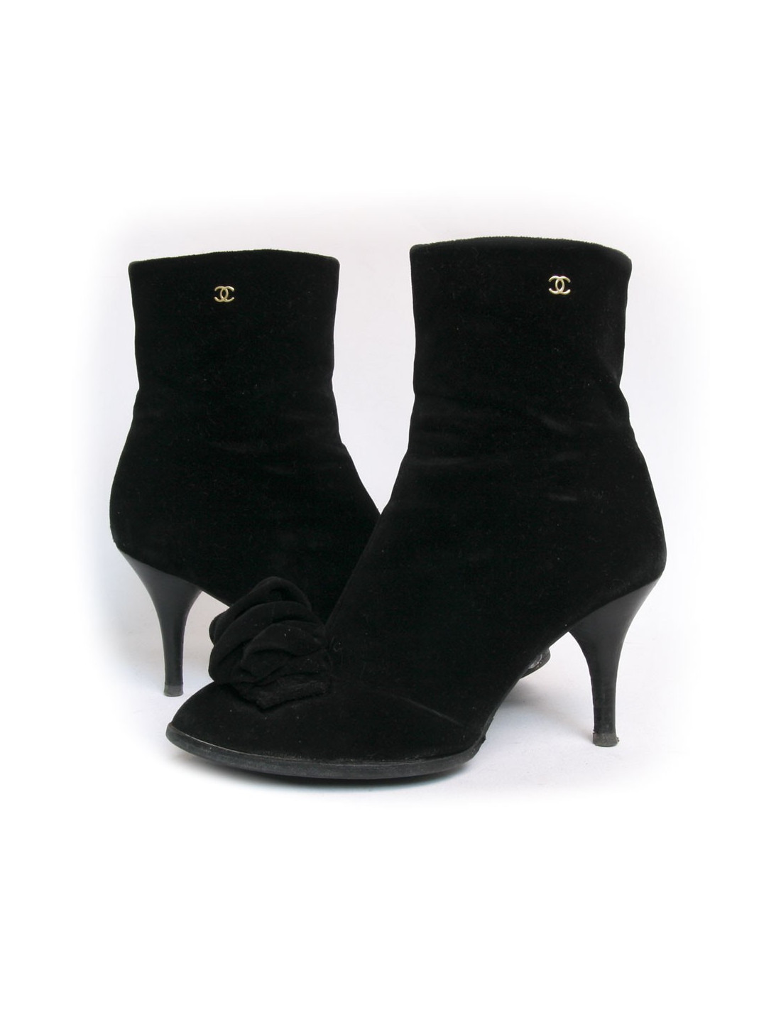 Boots to Chanel heels in black velvet. Size 39.5. Zipper inside the shoe. The "CC" logo in gold metal figure on the outside at the top. In very good condition. Some slight signs of wear is on the boots but very inconspicuous.