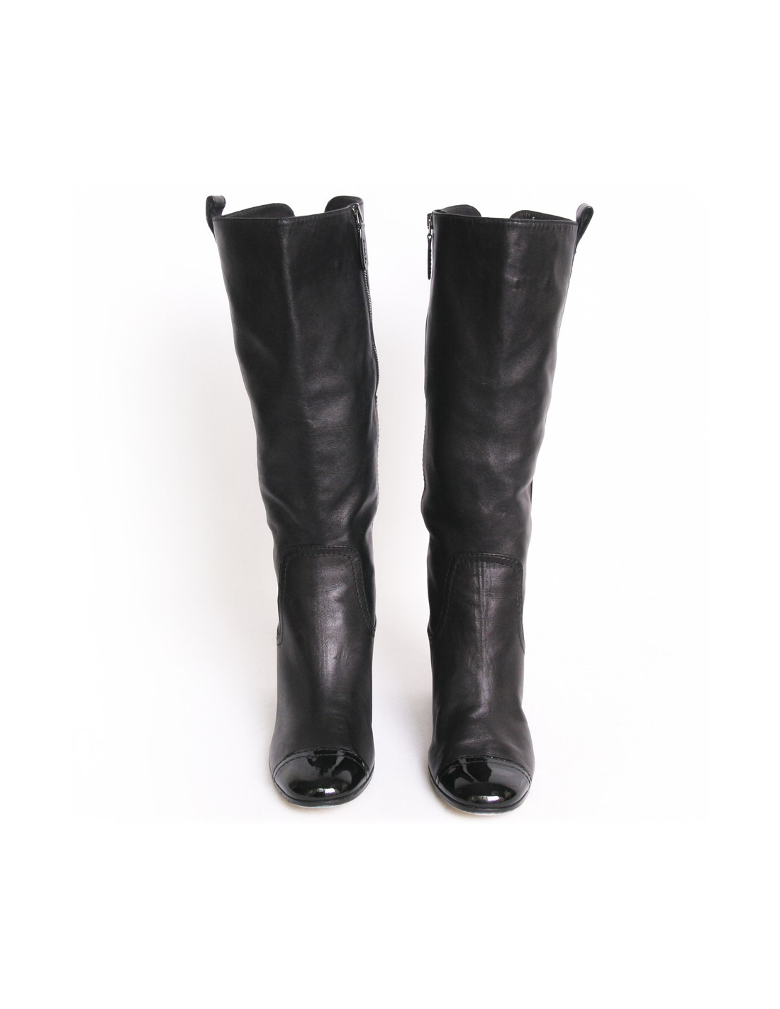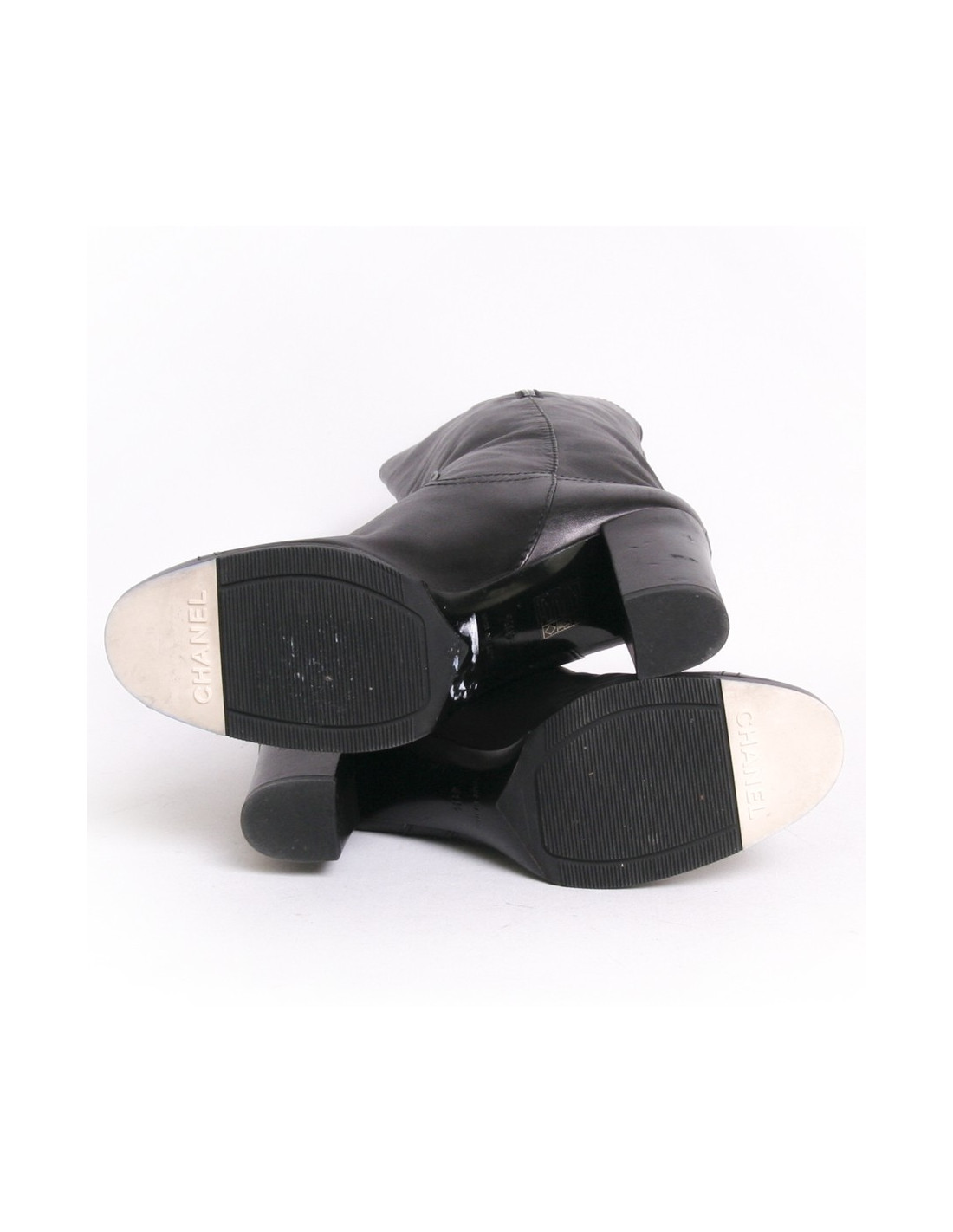 Gorgeous pair of boots size 41.5 of the House of Chanel Black lambskin and black Nail Polish tips. The inside of the boot is satin. Zipper inside the boot. They are non-slip. The retail price is 850 euros.
