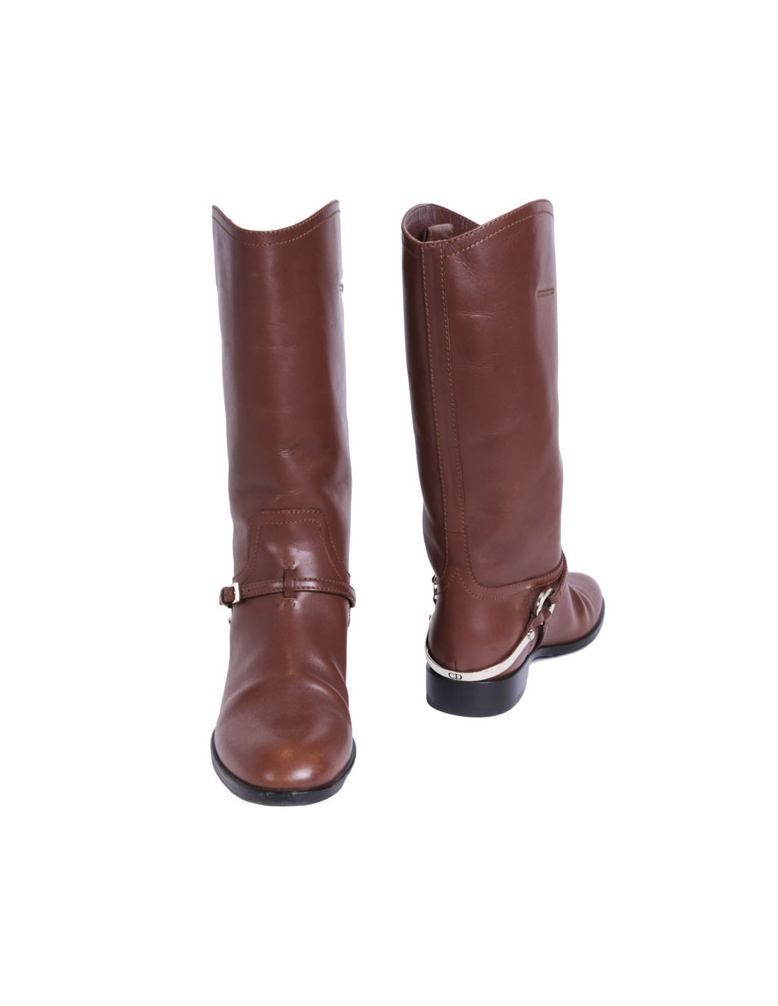 Lovely pair of boots of Christian Dior brown leather. Size 38.5. The calipers are gold metal pale gold. A few light marks on the leather in very good condition.