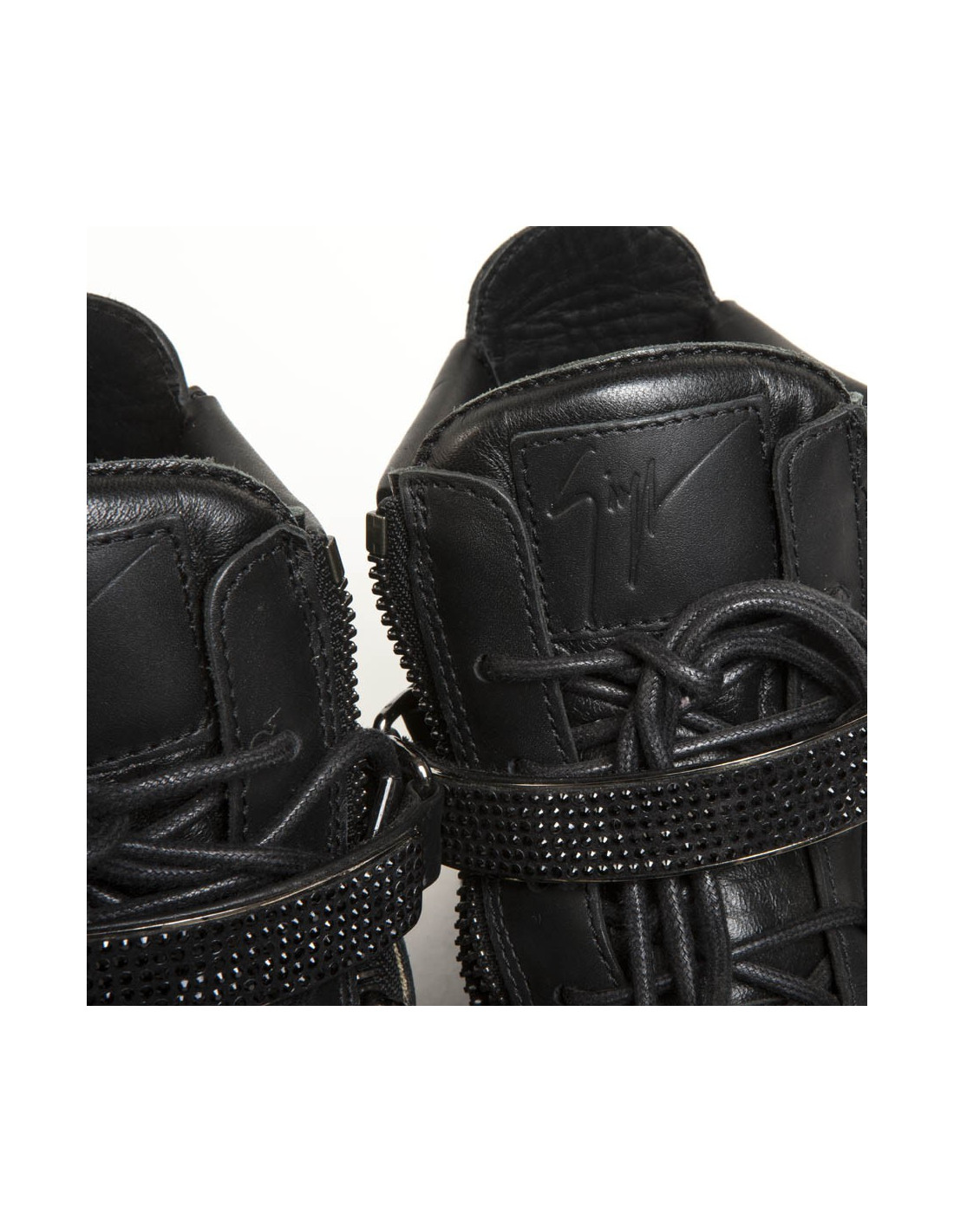 Basketball rising Giuseppe Zanotti leather and black rhinestones. Laces and a zip with two scratch closure.