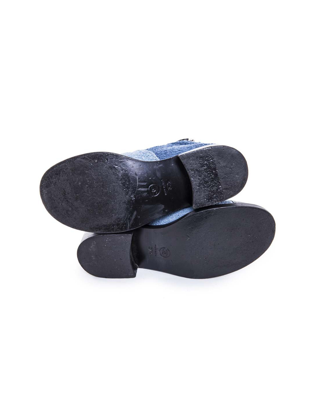 Boots de la Maison Chanel taille 37.5. Elles sont en tissu style éponge dans les tons bleu clair et bleu soutenu.