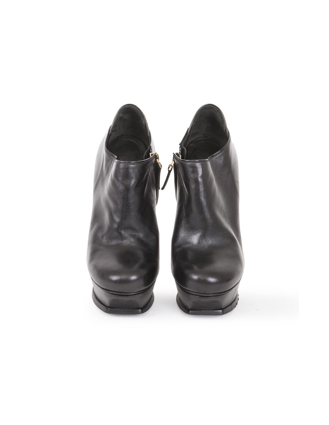 Zipper inside the foot. Micro-scratches on the left front platform.