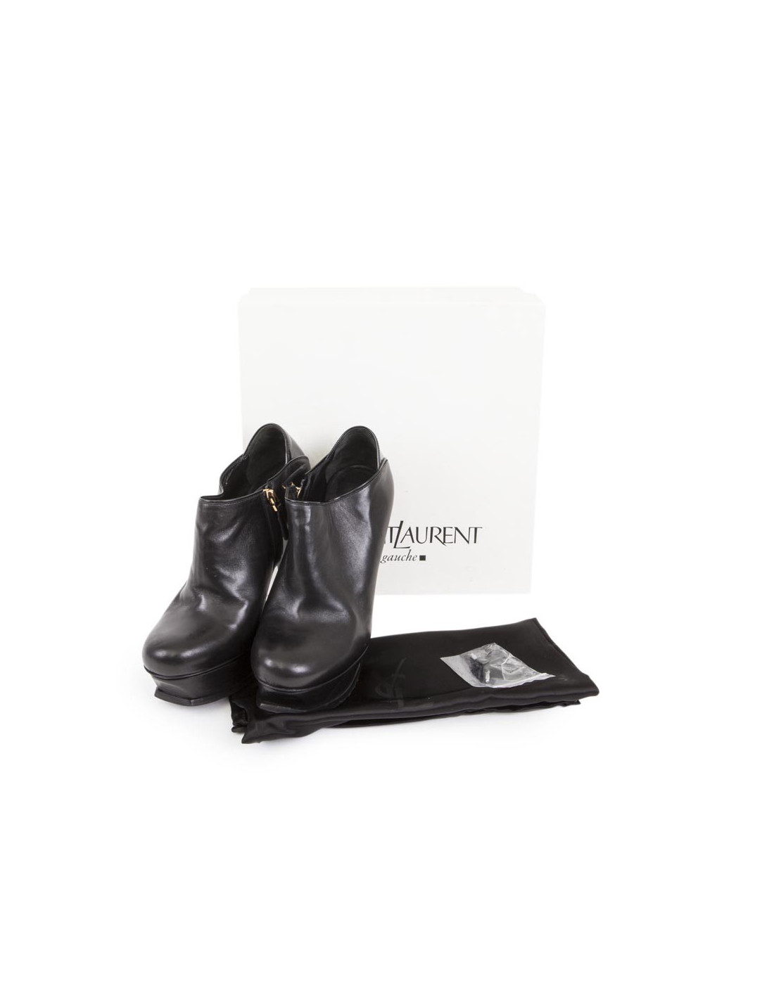 YVES SAINT LAURENT high heel platform boots in black leather size 37EU