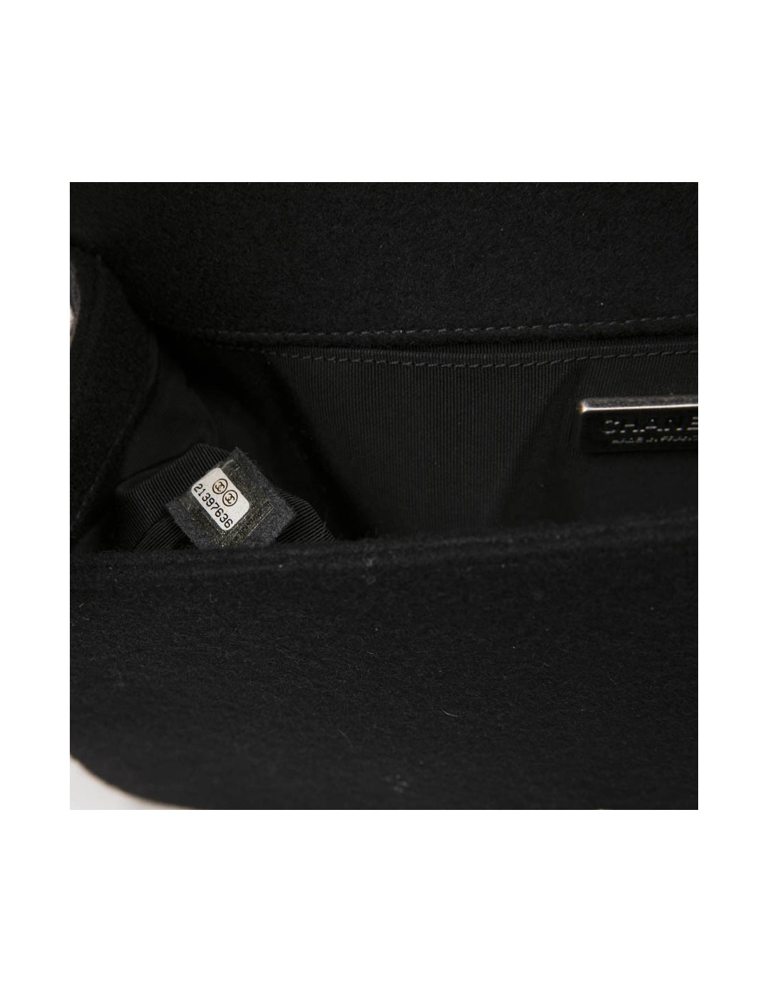 CHANEL Boy bag in black boiled wool with embroidered patches