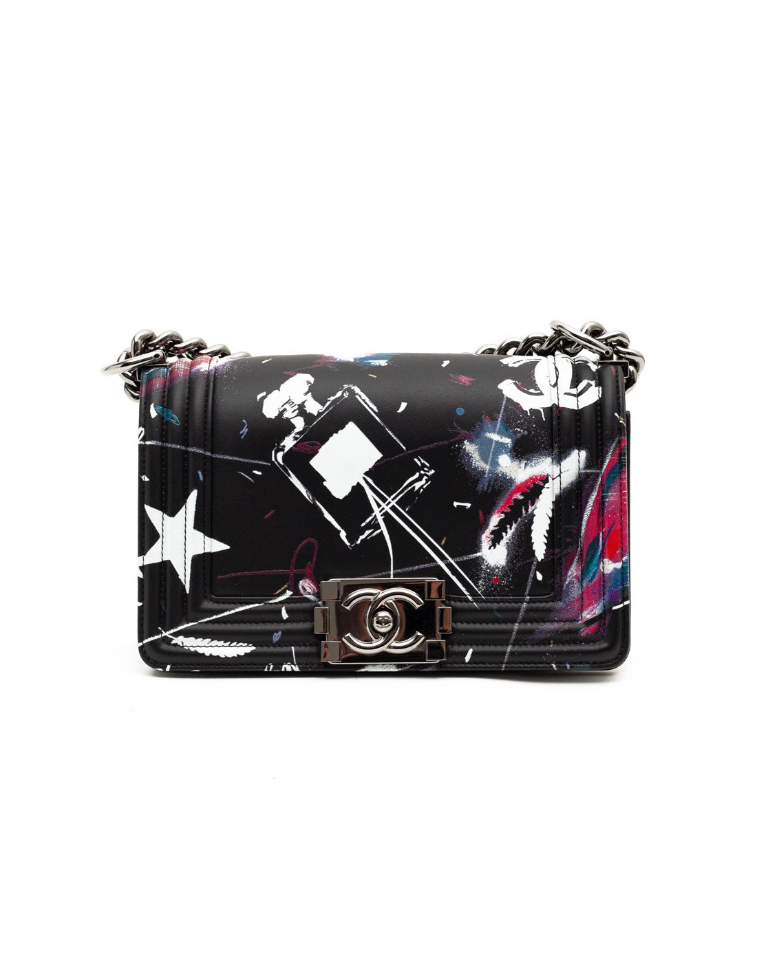 Last items in stock BOY CHANEL CHANEL Boy bag black leather and rhinestones CHANEL 34430 8,500.00 € Chanel small Boy bag with rhinestones and silver finish hardware Condition : very good (no missing rhinestones)Made in FranceCollection : Boy small modelGender : womanMaterial : smooth leather and rhinestonesInterior : black textileColor : blackDimensions: 20 x 12 x 7.5 cmShoulder strap: 104 cmHologram: 193...Authenticity card : noYear : 2014Jewelry :... Add to cart