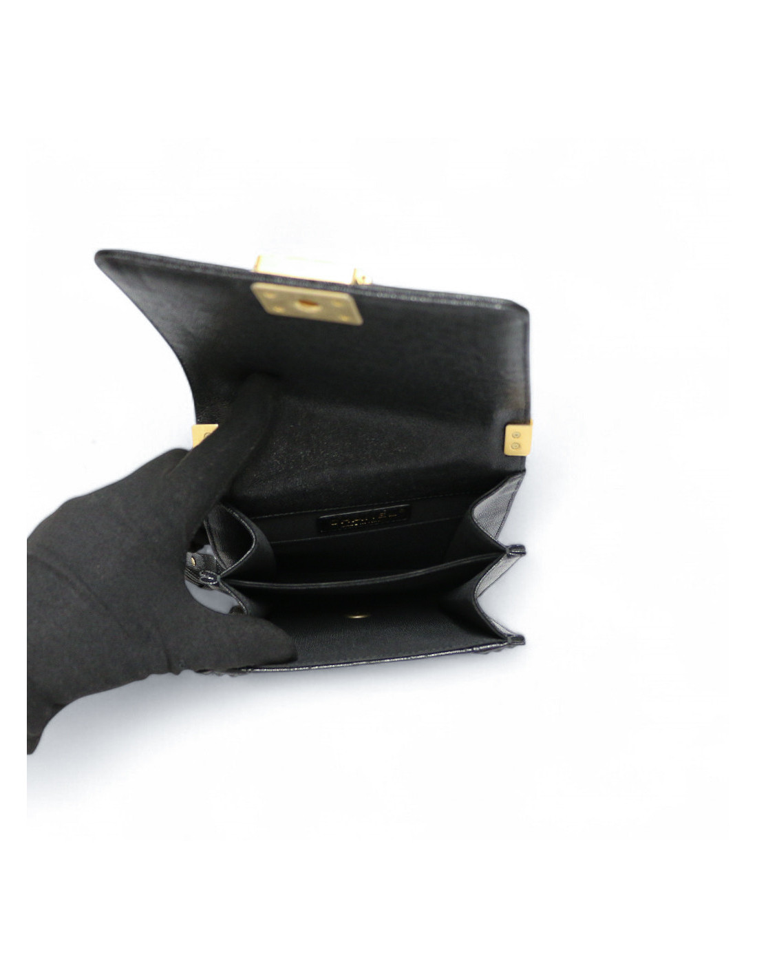 Last items in stock BOY CHANEL CHANEL mini Boy bag in black lambskin and golden lace CHANEL 26105 6,200.00 € CHANEL mini Boy bag in black lambskin and golden lace Condition : very goodMade in FranceHologram: yesYear : 2013 Collection Paris VersaillesMeasurements: Length 13 cm, Height 8 cm, Depth 5 cmColors : black, goldMaterials : leather, lace Advantage Valois Vintage Paris: comes with its CHANEL dustbag Add to cart