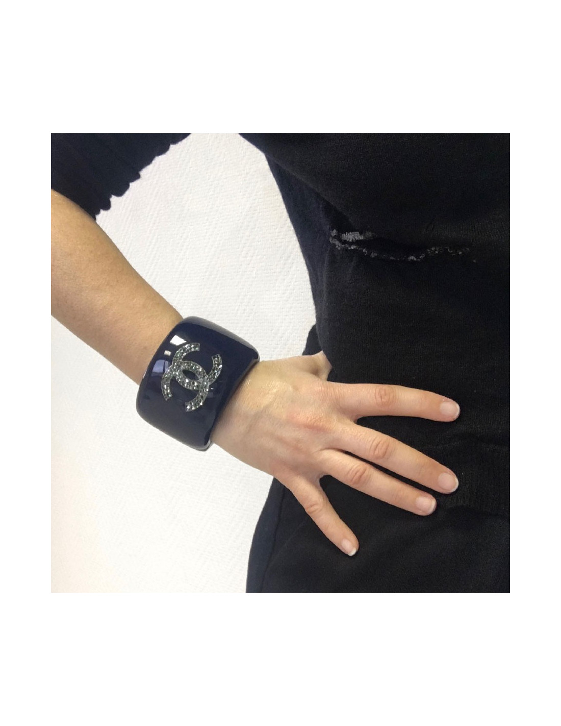 CHANEL cuff bracelet in blue lacquered resin and inclusion of rhinestones