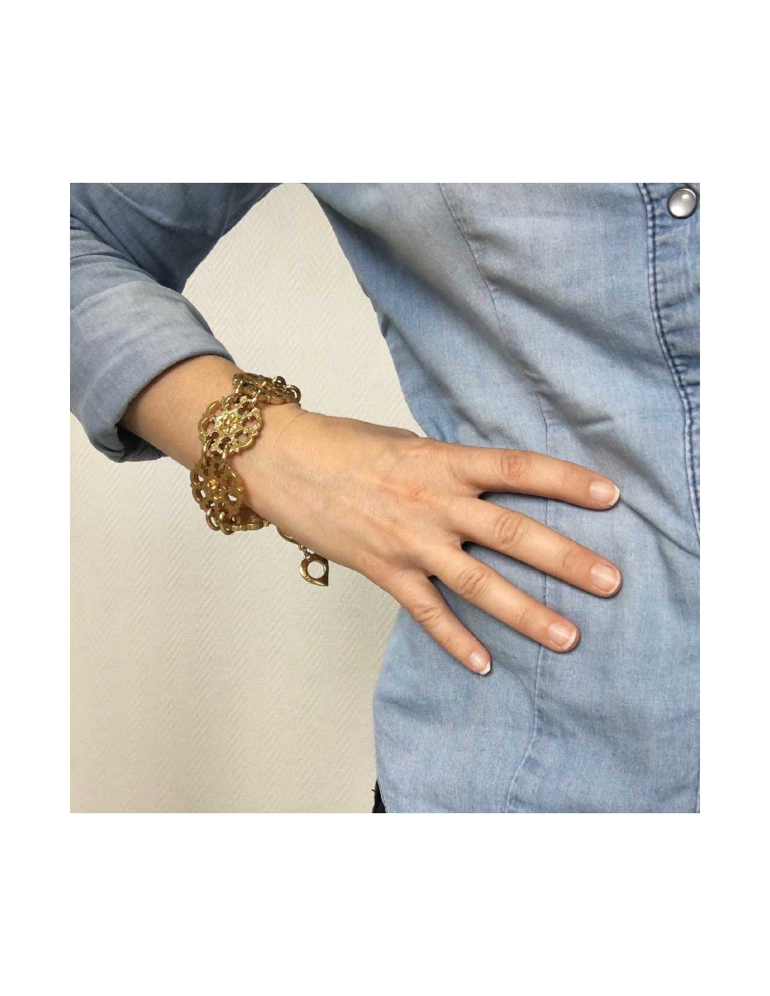 Sold BRACELETS CHANEL gilded metal braided chain bracelet CHANEL 30891 750.00 € CHANEL gilded braided chain bracelet Condition : very goodMade in FranceMaterials : metalColor : mat goldSigned: CHANEL Measurements: 19 x 1,5 cmYear : circa 2000 View