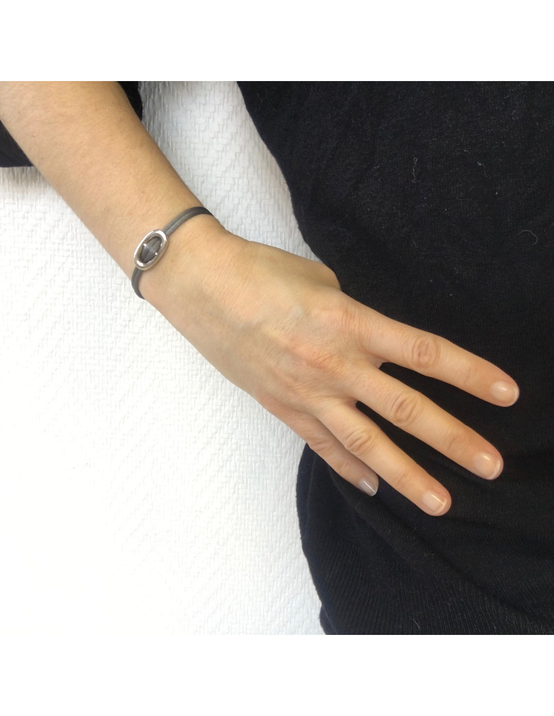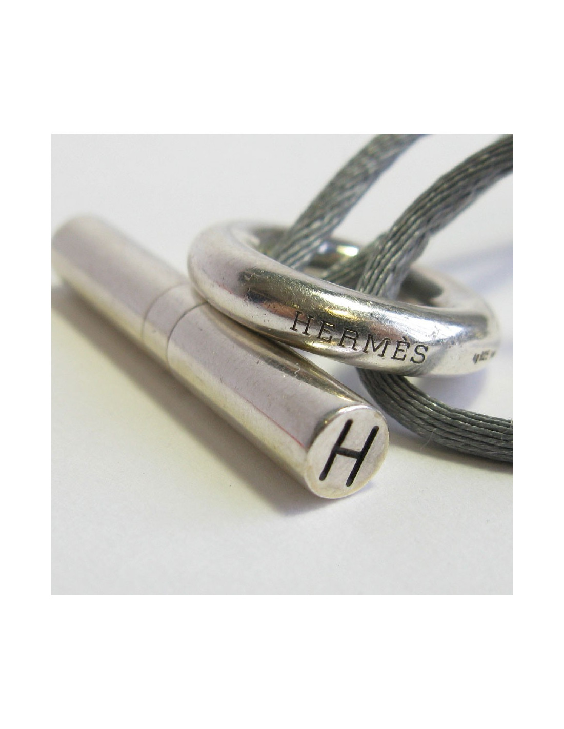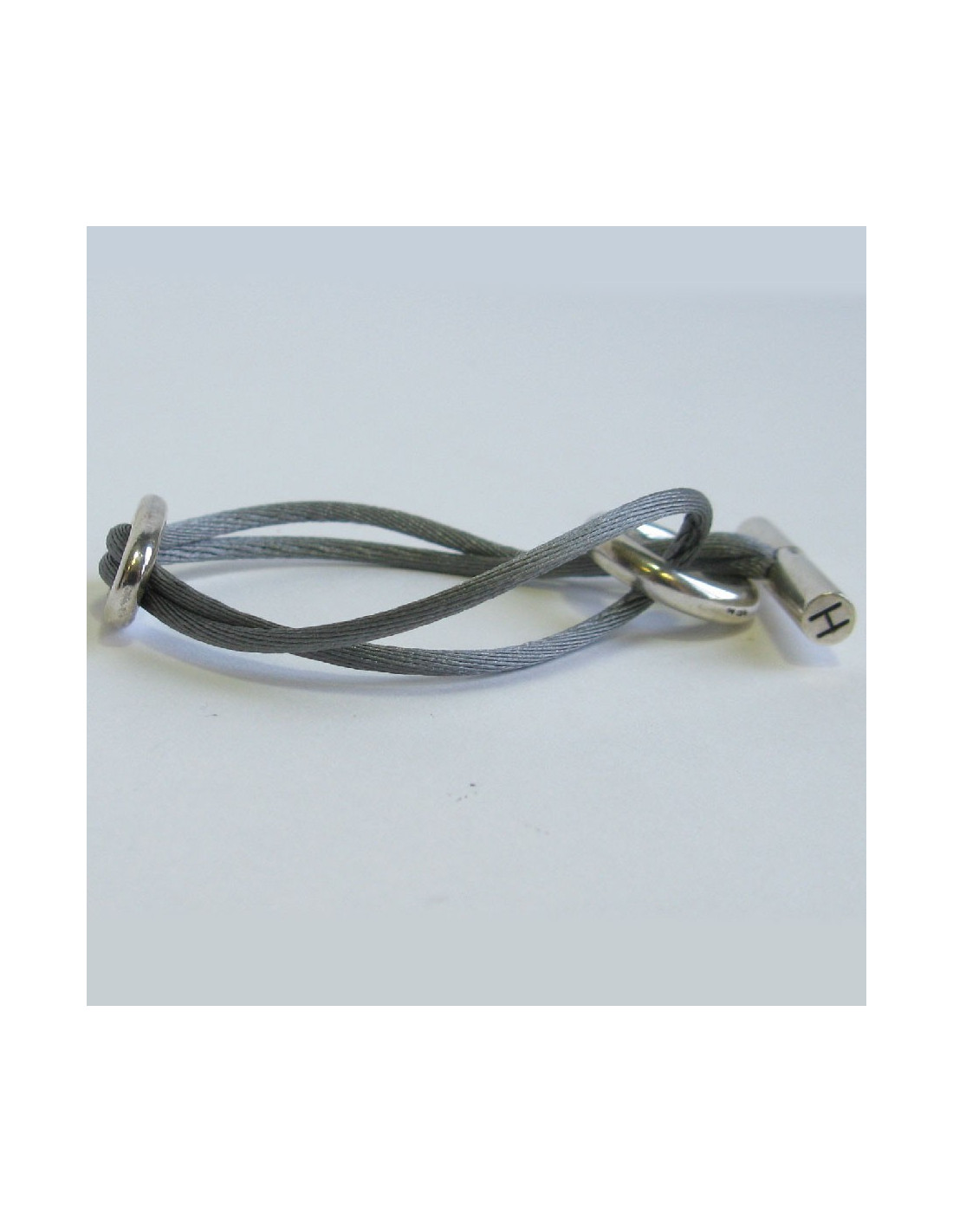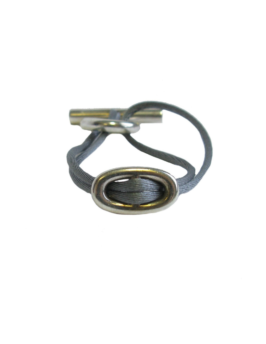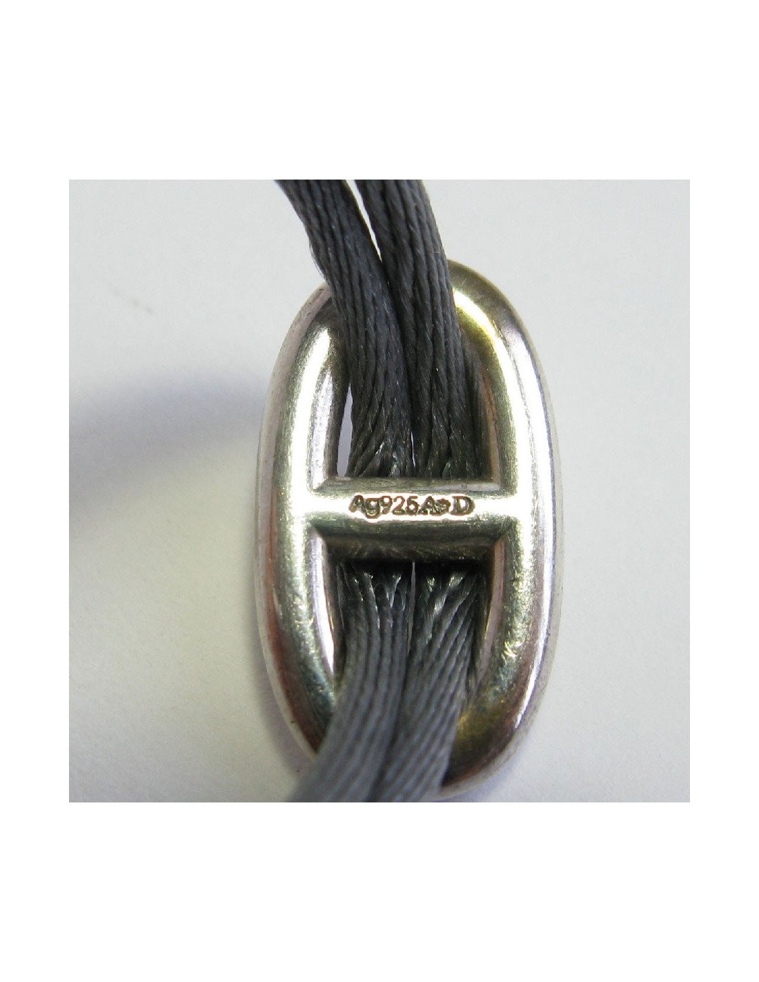 HERMES Bracelet 'Skipper' Model in Sterling Silver Ag925 and Gray Silk Thread
