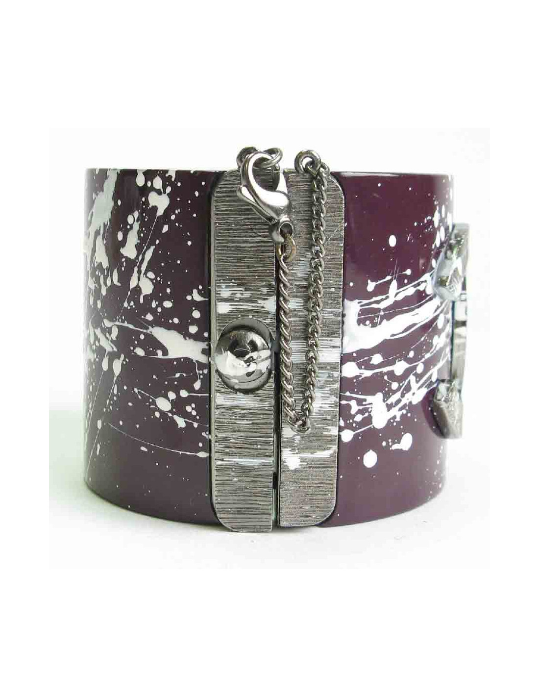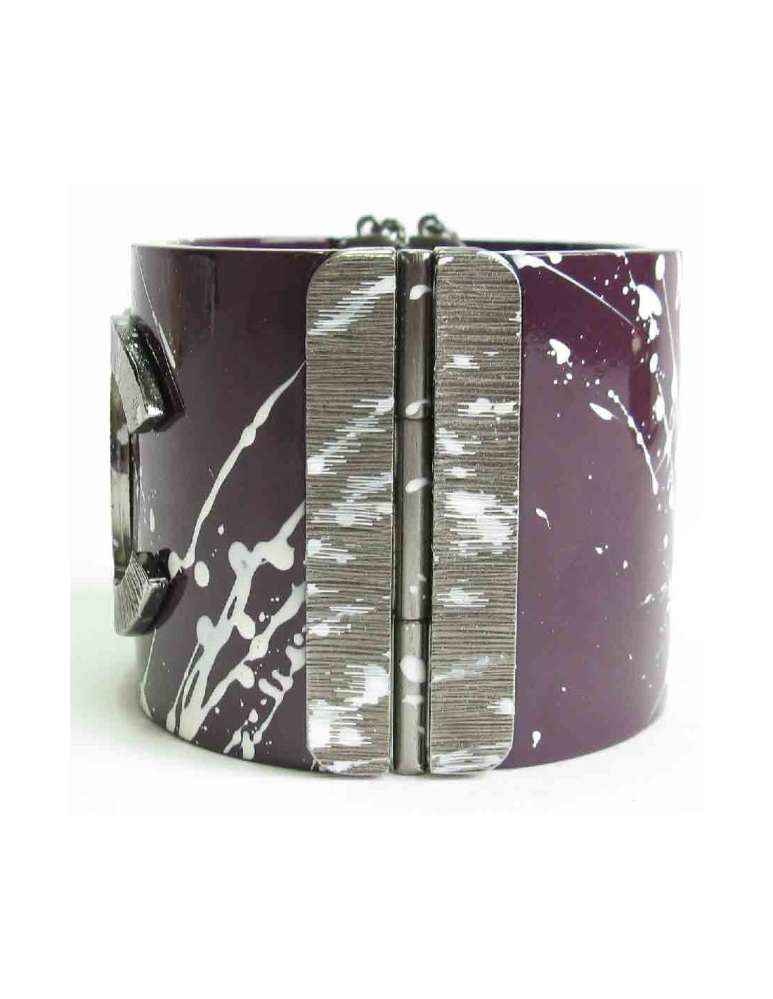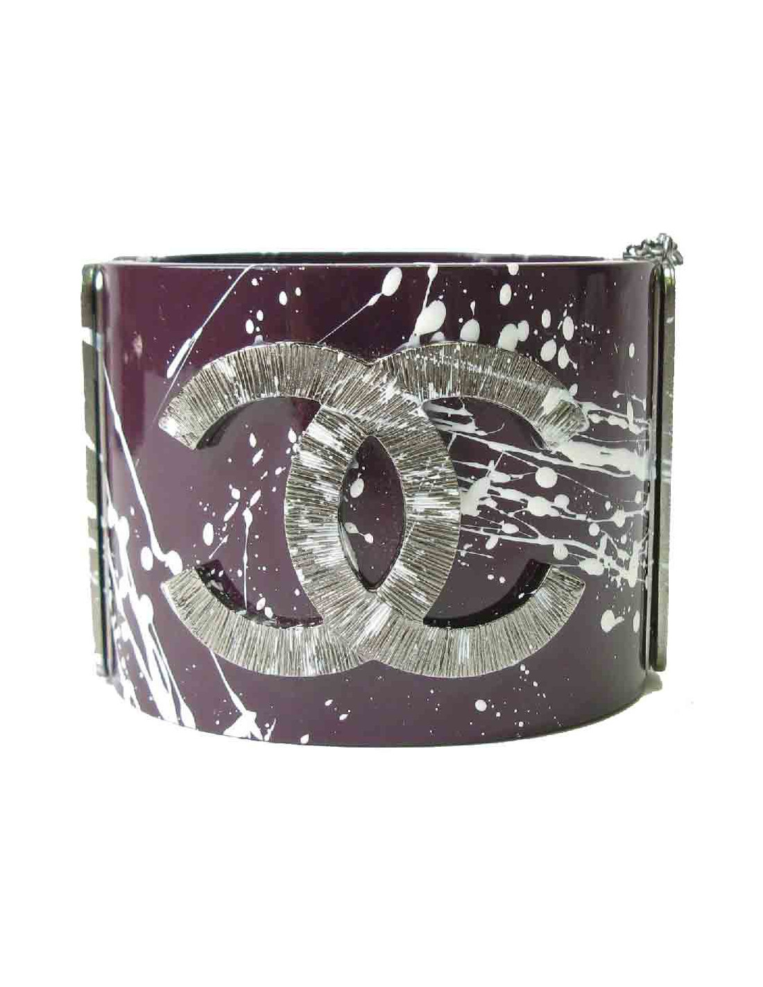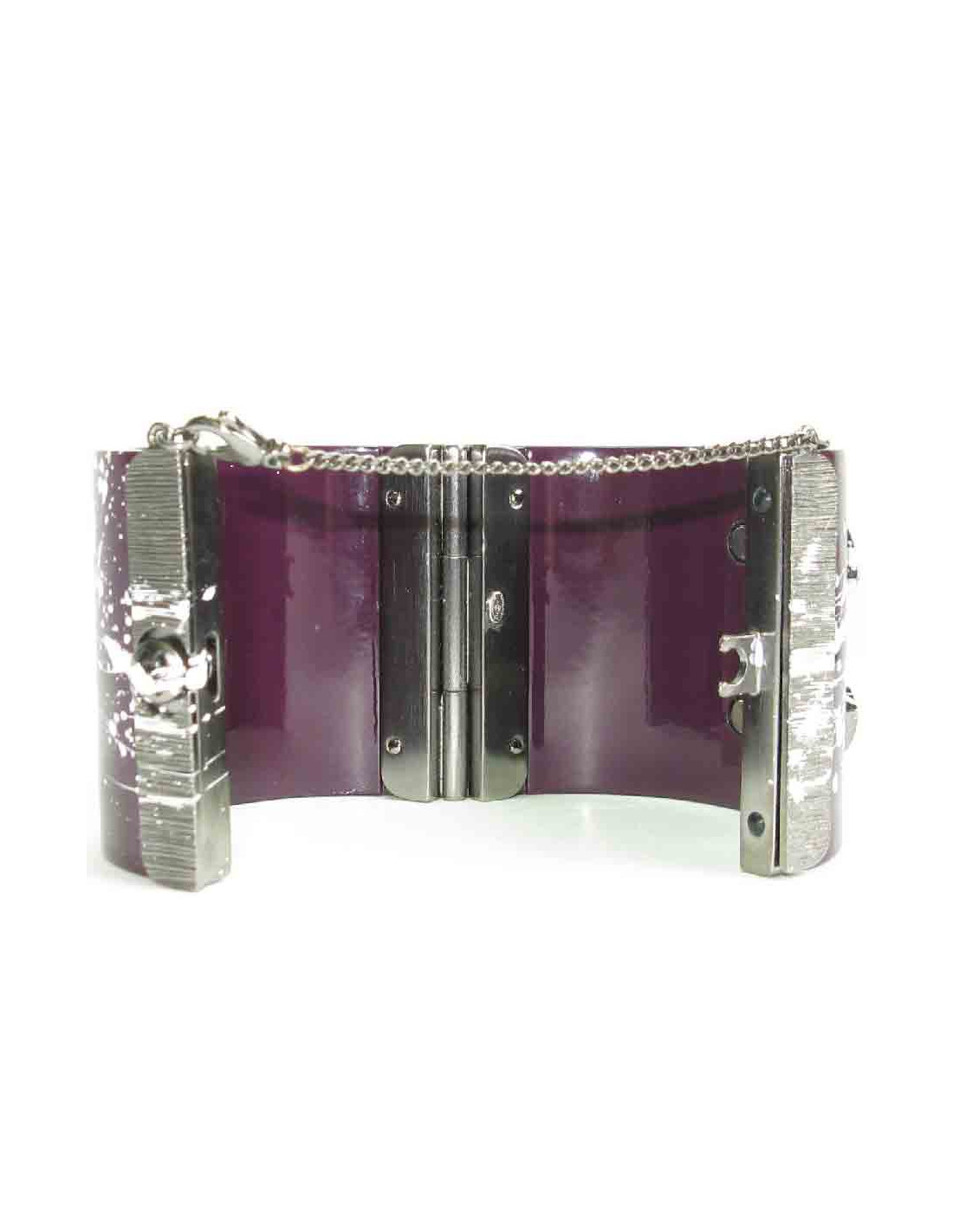 Very beautiful Chanel graffiti cuff bracelet in purple resin and silver hardware