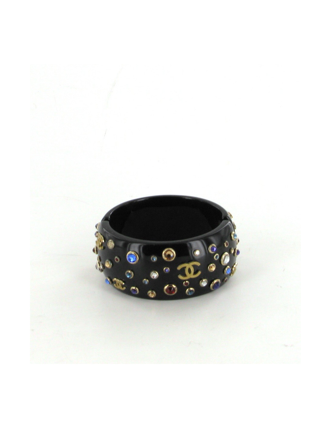 CHANEL CC-liveried cufflinks set with multicolor Rhinestones, black resin