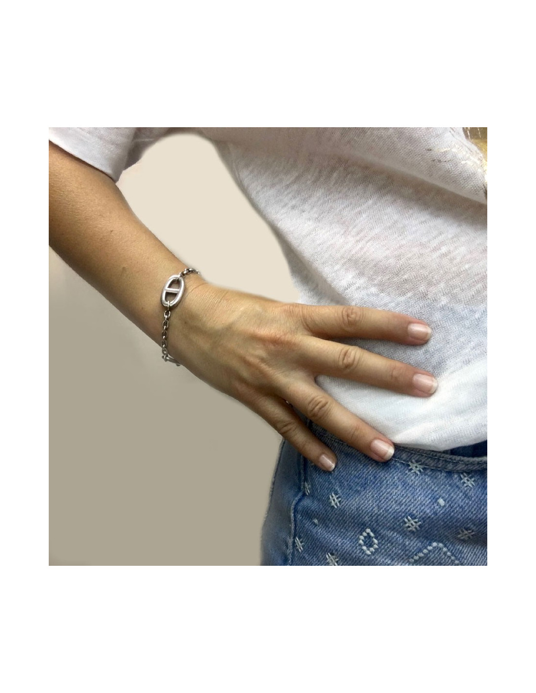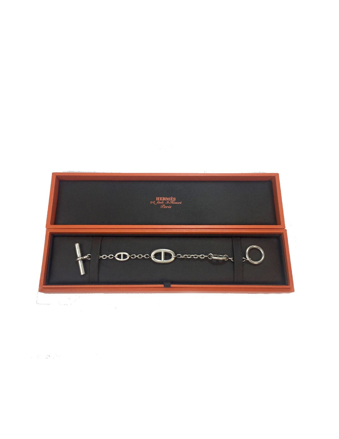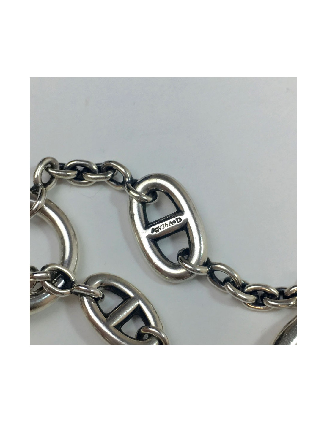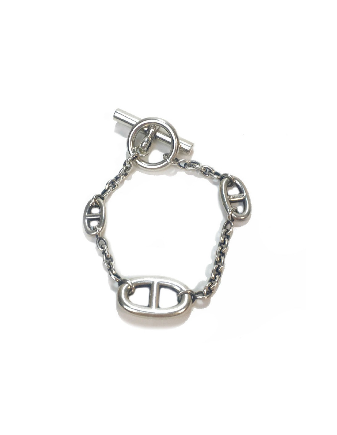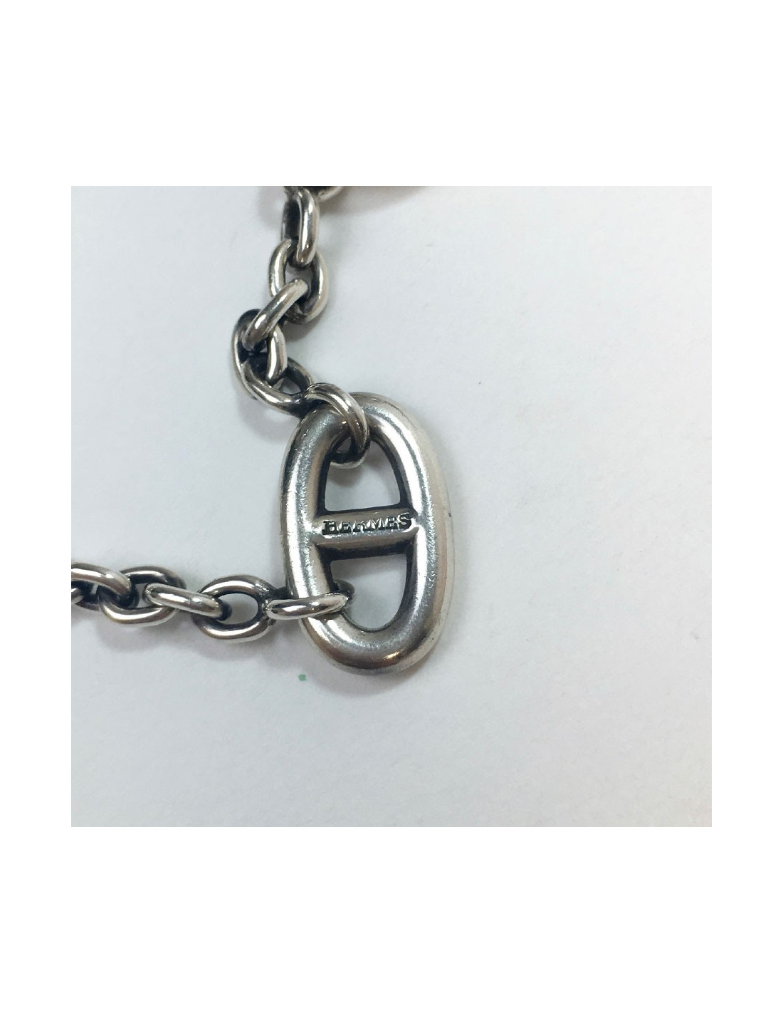 Last items in stock BRACELETS HERMÈS Game Long Anchor silver bracelet HERMES 36508 2,100.00 € HERMÈS Game Long Anchor silver bracelet Condition: very goodMade in FranceMaterial : sterling silver 925/1000Color : silverMeasurements : wrist circumference 15 cm, width: 0.3 cm, diameter: 4 cmStamp : yesHardware : sterling silver (micro-scratches)Weight: 25 gramsDetails : Hermès Paris” signature inside. Bracelet in silver with large links. Advantage... Add to cart