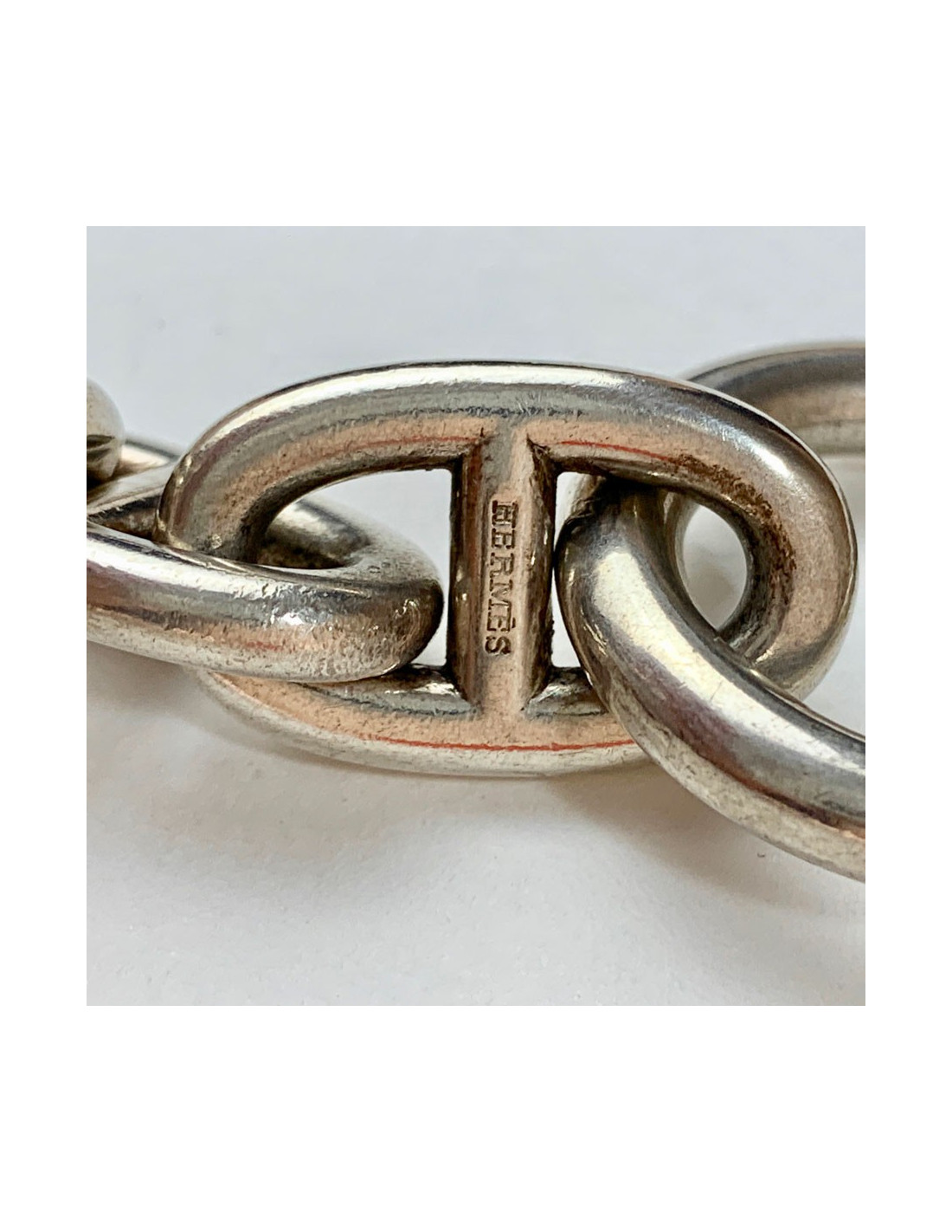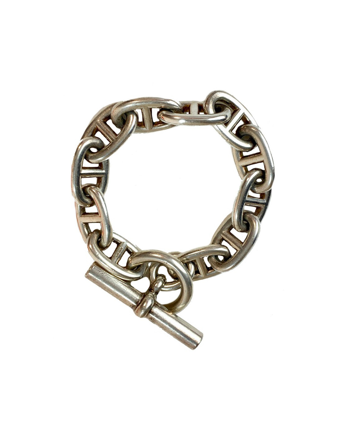 Last items in stock BRACELETS HERMES Eclipse sterling silver 925/1000 bracelet HERMES 35097 1,900.00 € HERMES Eclipse sterling silver 925/1000 bracelet Condition : very goodMade in France Collection : EclipseMaterial: sterling silver 925/1000Color: silverSize : S/MMeasurements: height 4 cm, maximum wrist circumference 17 cmHardware : silver (micro-scratches)Stamp : yesDetails : silver flat band bracelet with “H” and two perforated anchor chain links Add to cart